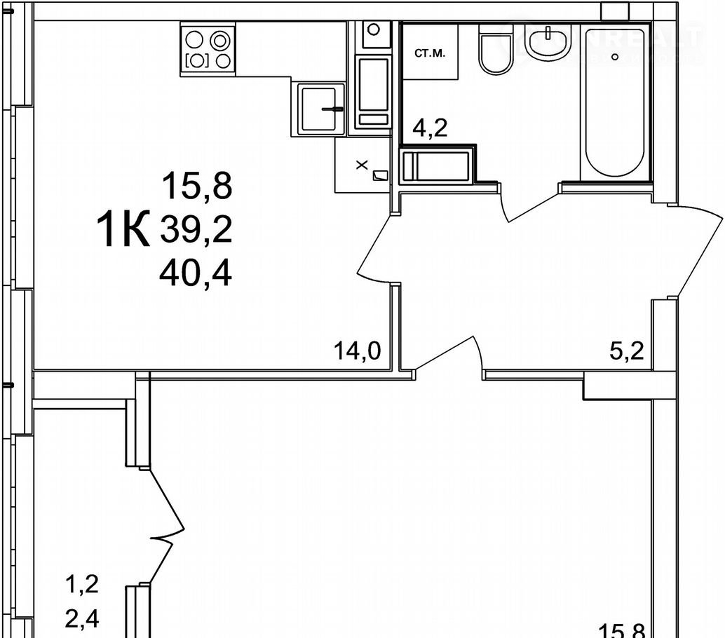 Общая площадь 40.4 м2