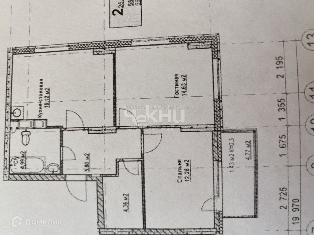 2-комнатная квартира, 60 м2, этаж 14 / 23, на продажу в деревне Анкудиновке