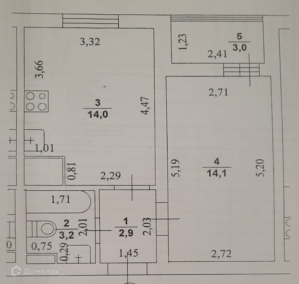 Жилая площадь 14.1 м2