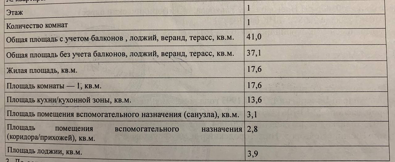 Общая площадь 41 м2