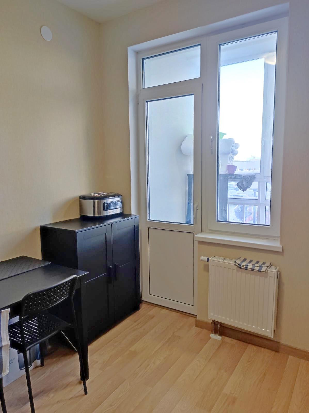 Застекленная лоджия имеет выход из кухни. Площадь лоджии позволяет разместить на ней зону отдыха. На кухне площадью 8,84 м2  вместительный кухонный гарнитур и обеденная зона.  Кухонный гарнитур остается вместе с встроенной техникой новым владельцам. Квартира чистая, ухоженная, без неприятных запахов. Санузел отделан современной  плиткой. Квартира не требует ремонта, можно въехать без дополнительных вложений.