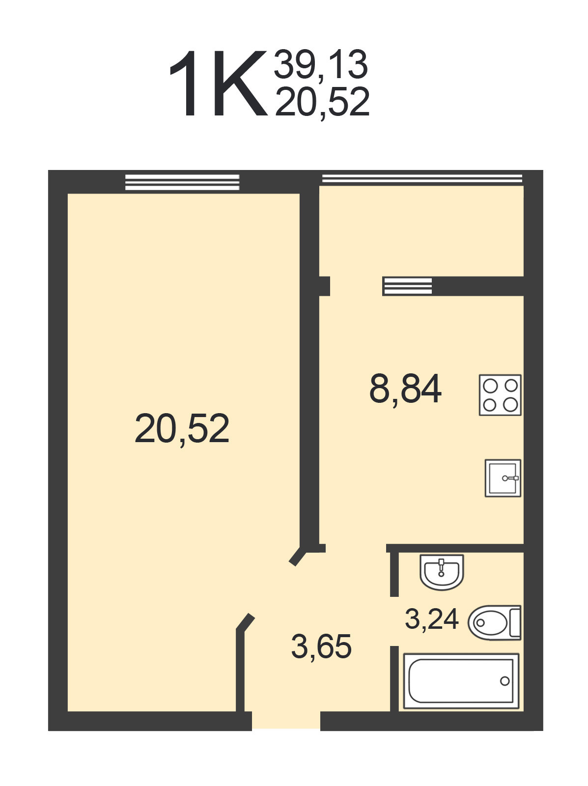 Общая площадь 39.13 м2