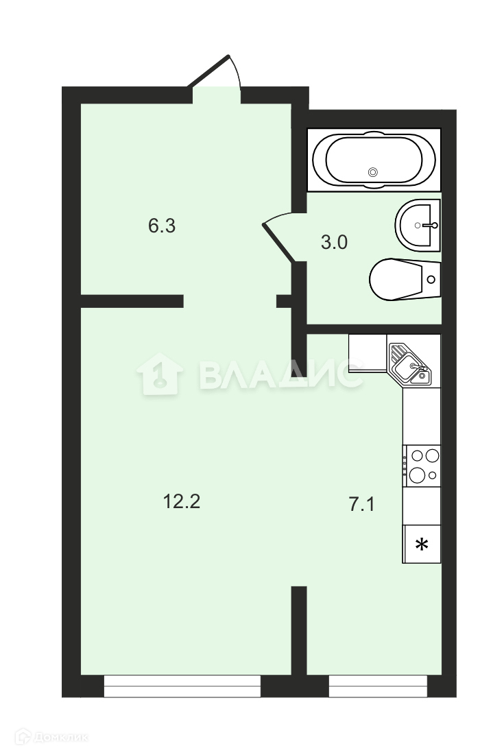 Общая площадь 28.6 м2
