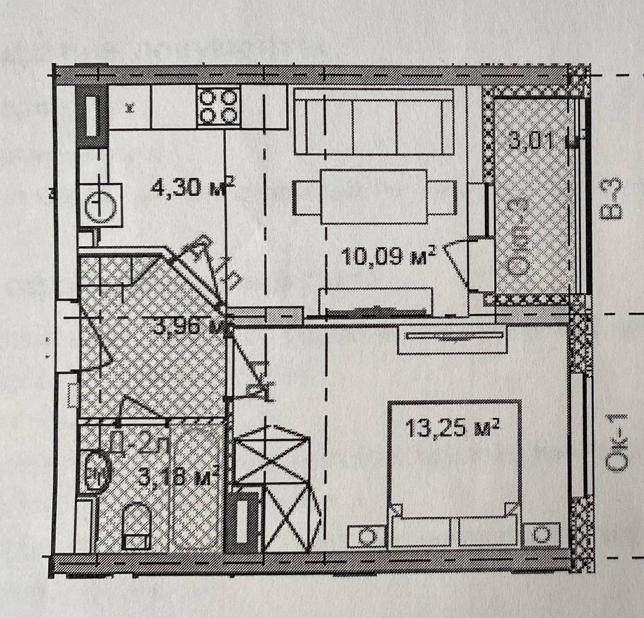 Балкон, лоджия 1 балкон