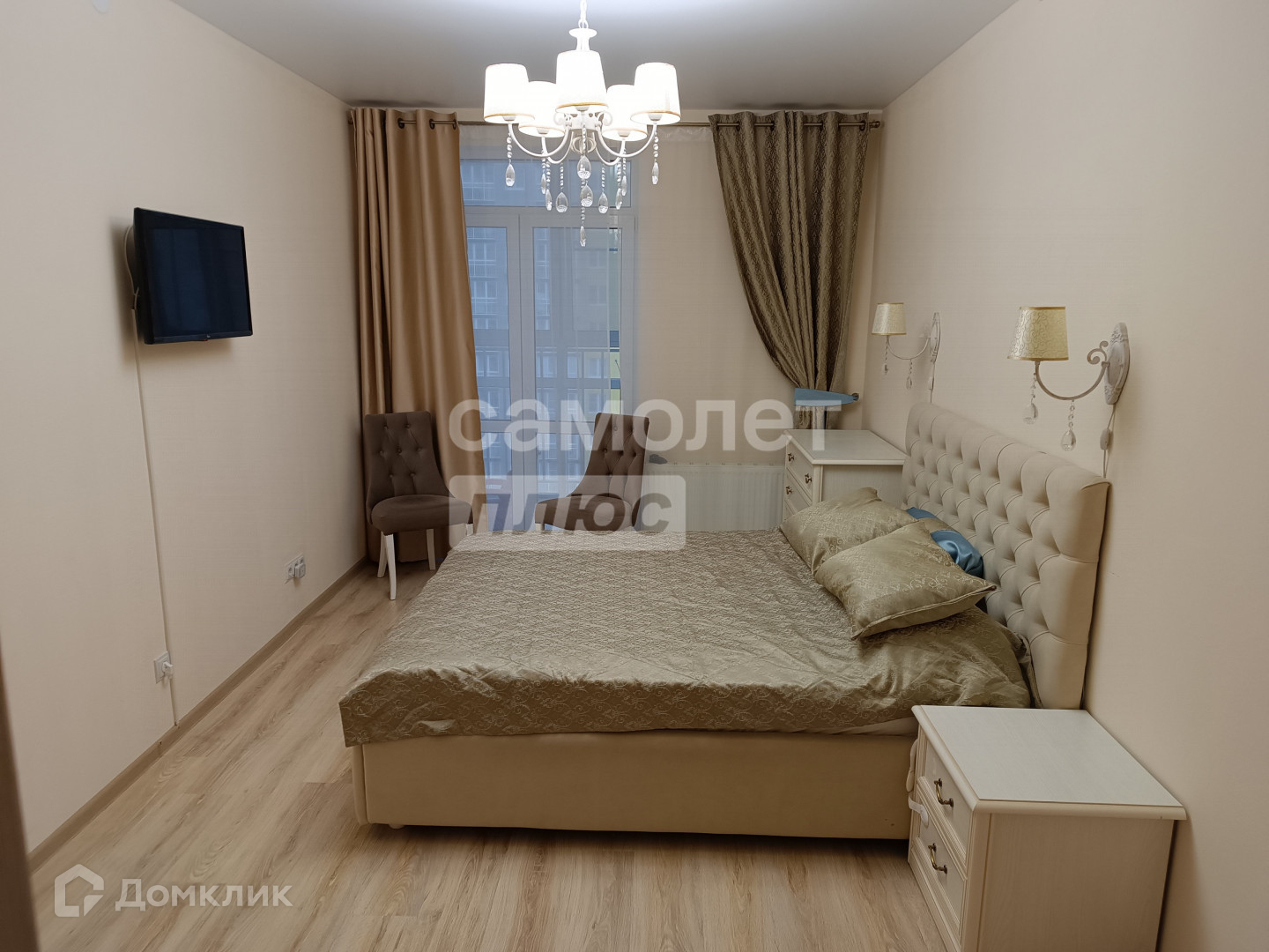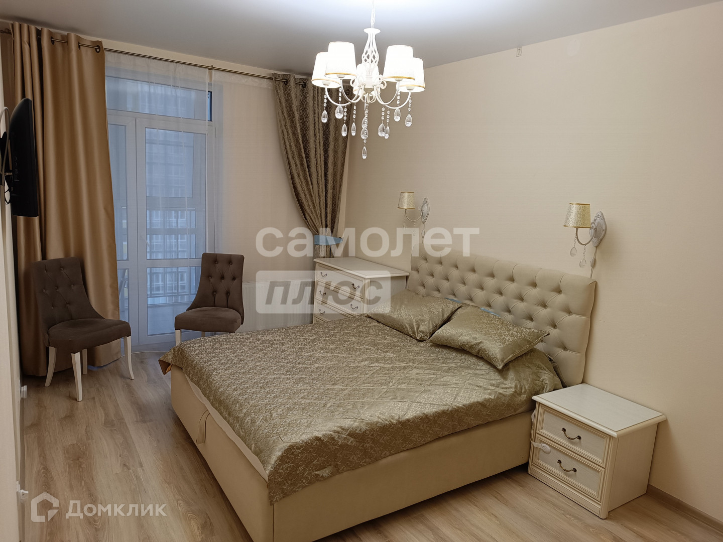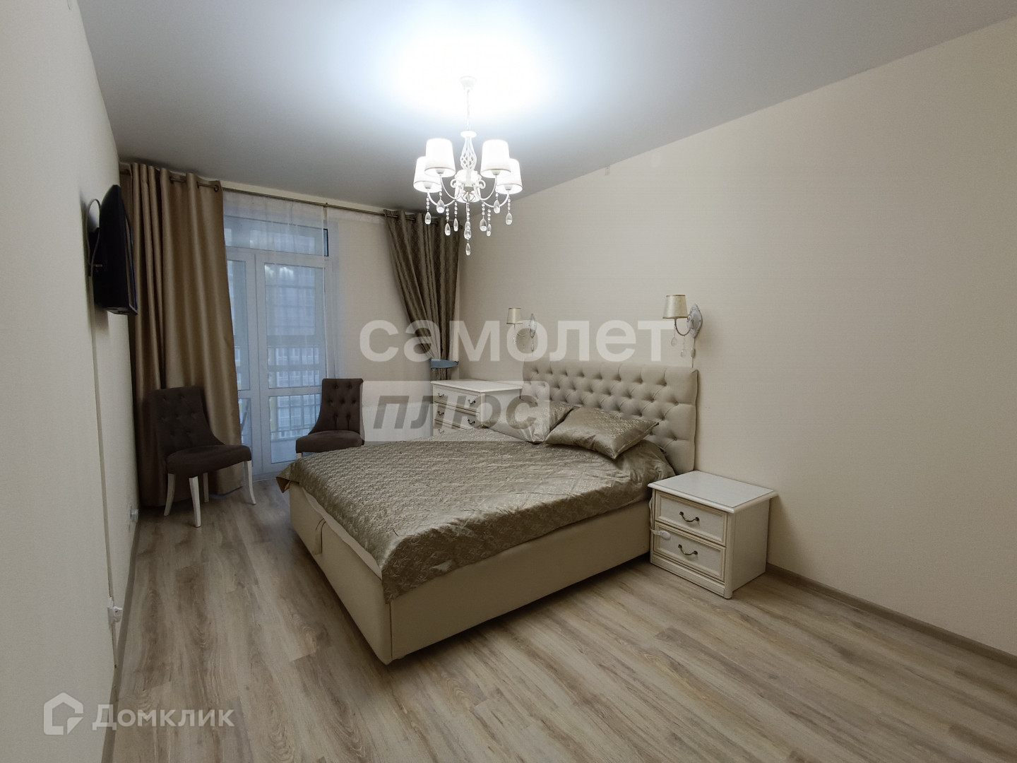 Спальня - 15,4 кв.м с балконом - 4кв. и гардеробной 3,4 кв.м. Детская - 12.5 кв.м