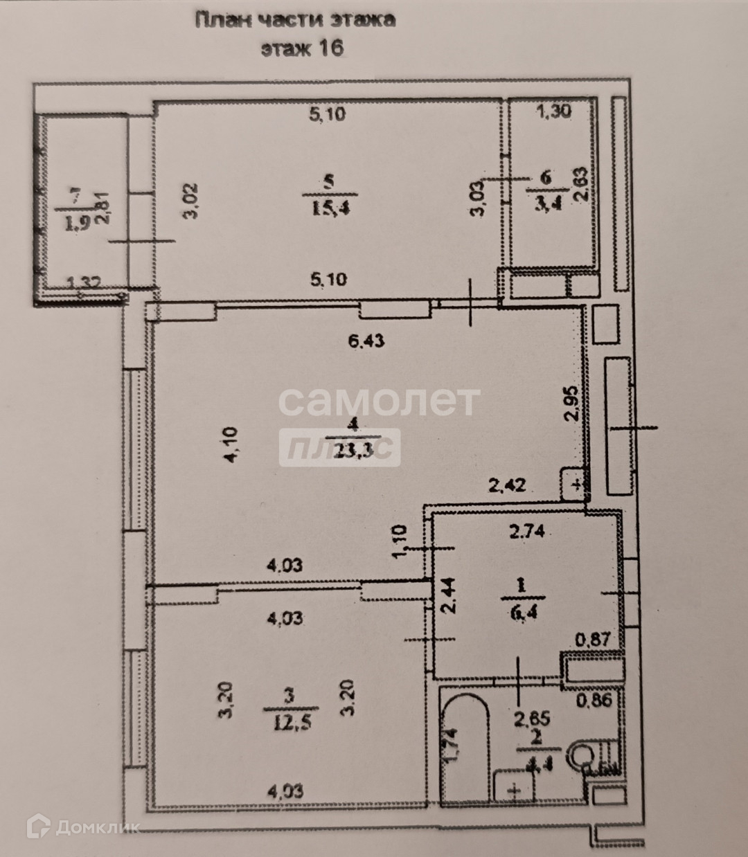 Общая площадь 65.4 м2
