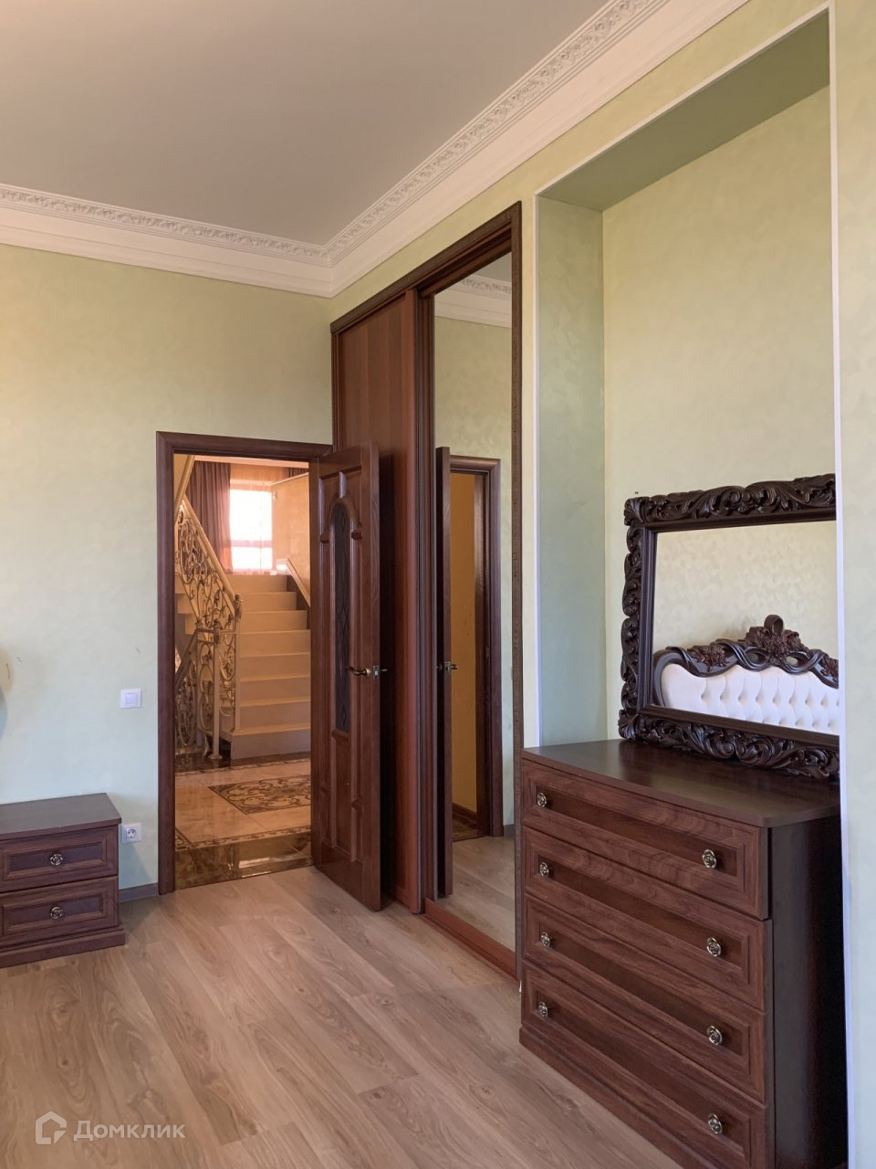 Вернувшись на лестницу поднимаемся на  2ой основной этаж,где располагается главная спальная комната с собственной душевой.Рядом три отдельные спальни,одна из которых с застекленной лоджией и сан.узел с ванной.