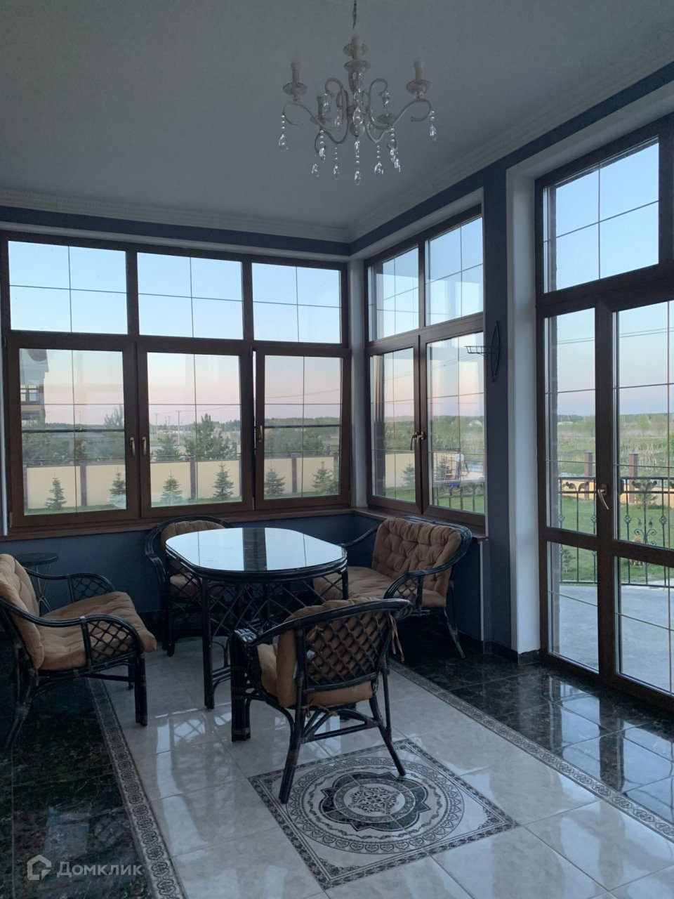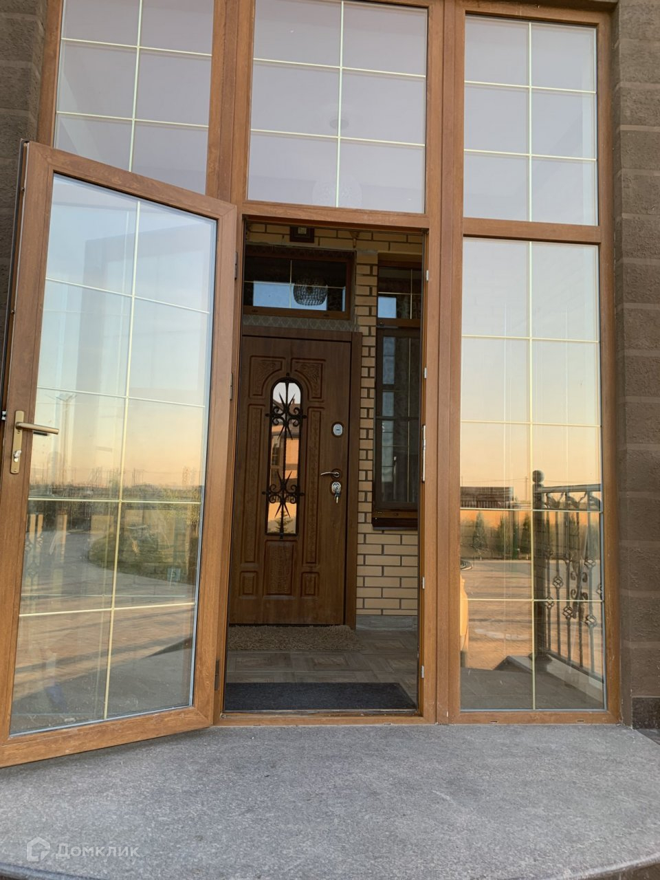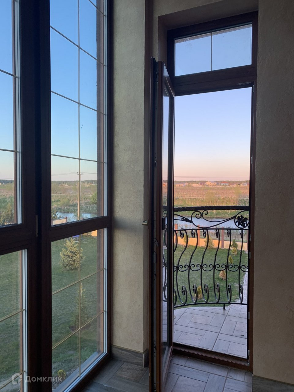 Далее выход на застекленную террасу с панорамным остеклением и вот Вы на балконе с кованными перилами.