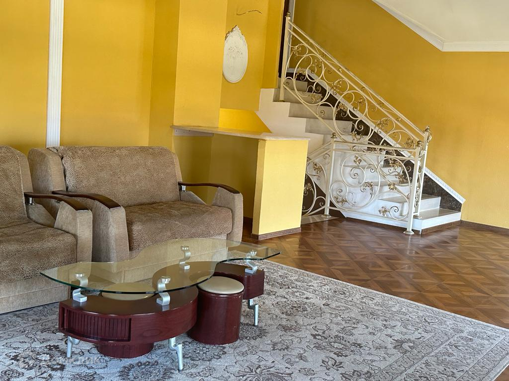 Внутренняя отделка : Потолок - гипрок, окраска. Стены - штукатурка, окраска, оклейка, кафельная плитка. Перила лестницы - кованные. Ручная работа.