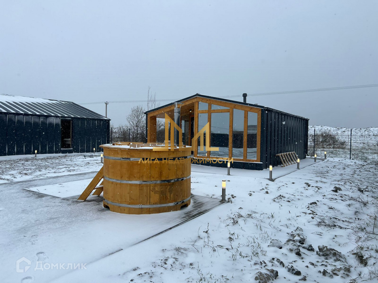 На участке расположена баня с дровяной печью, комнатой отдыха и всем необходимым. Так же на улице установлена купель.