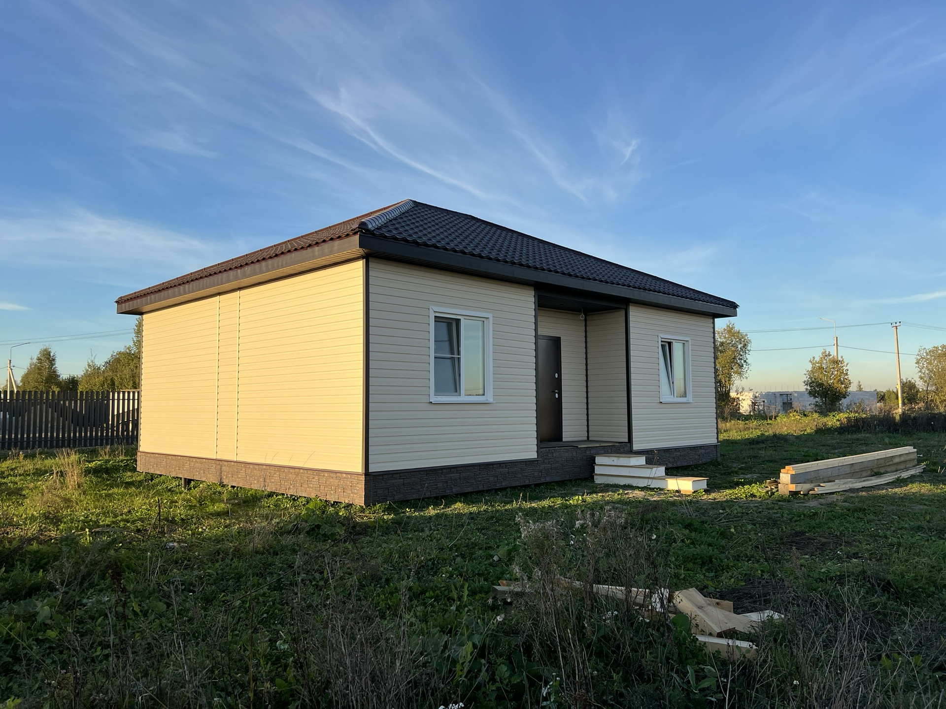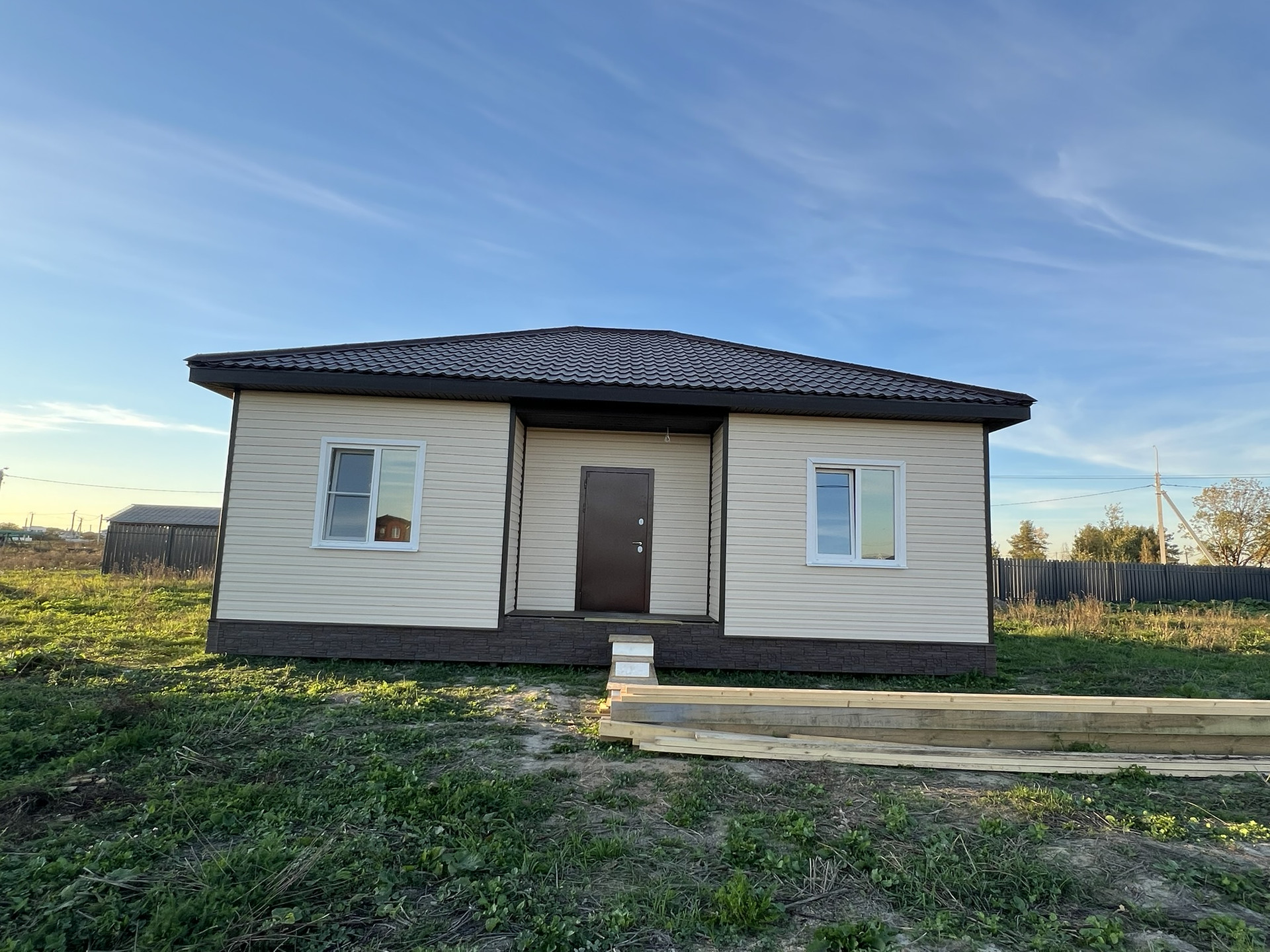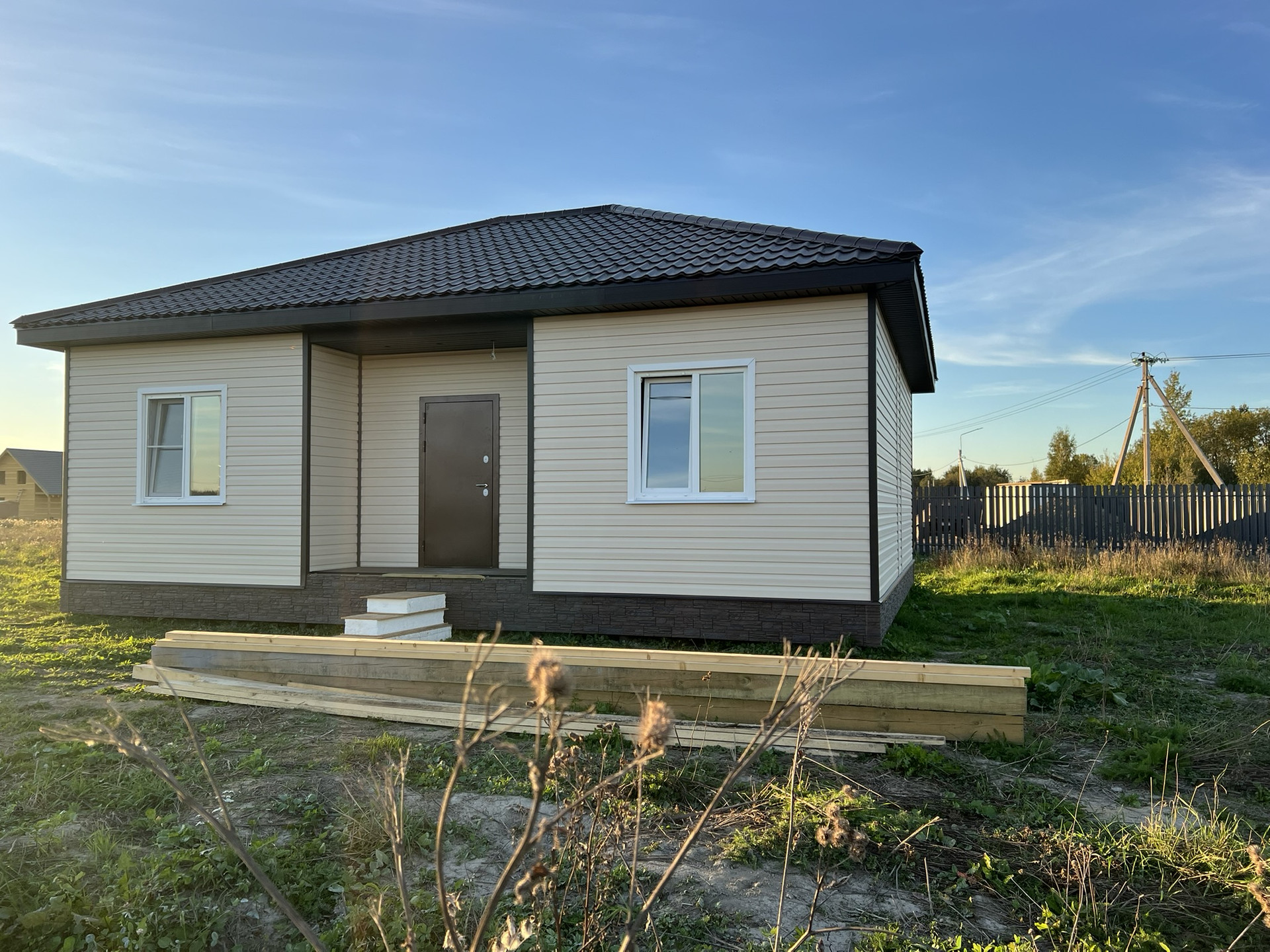 Внутри чистовая отделка, ламинат 33 класс, натяжные потолки, электрика разведена, розетки, светильники. Можно сразу переехать и жить, прямо как в квартире только лучше!