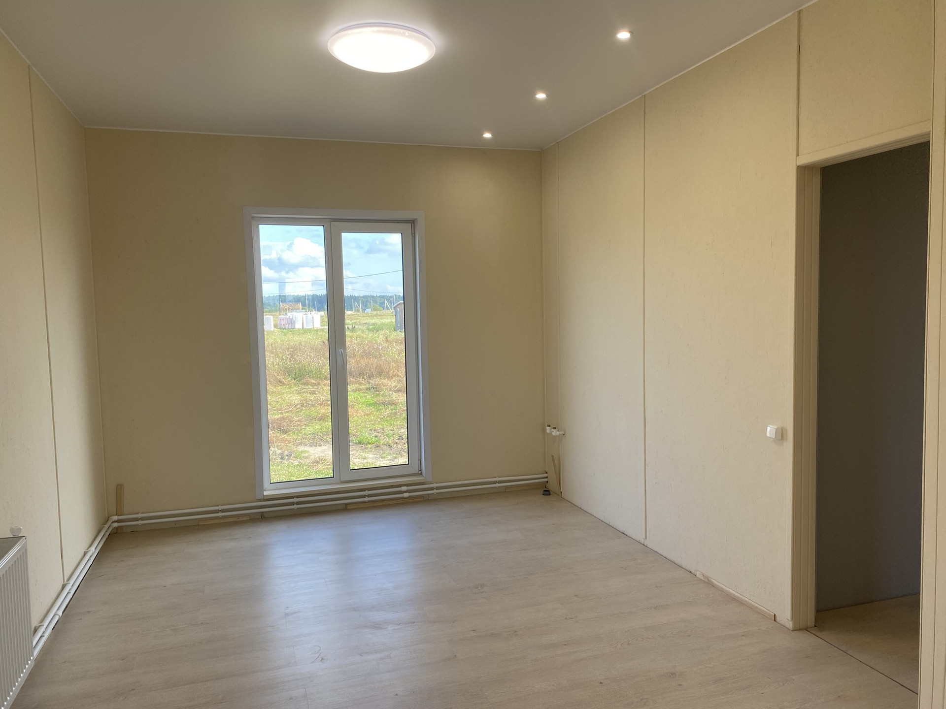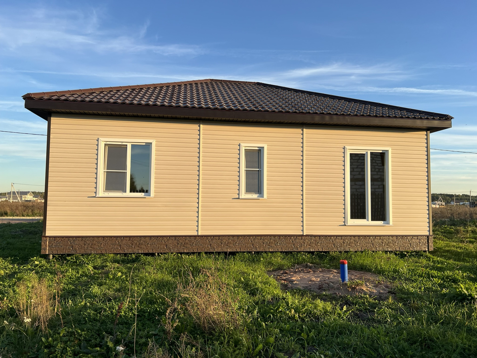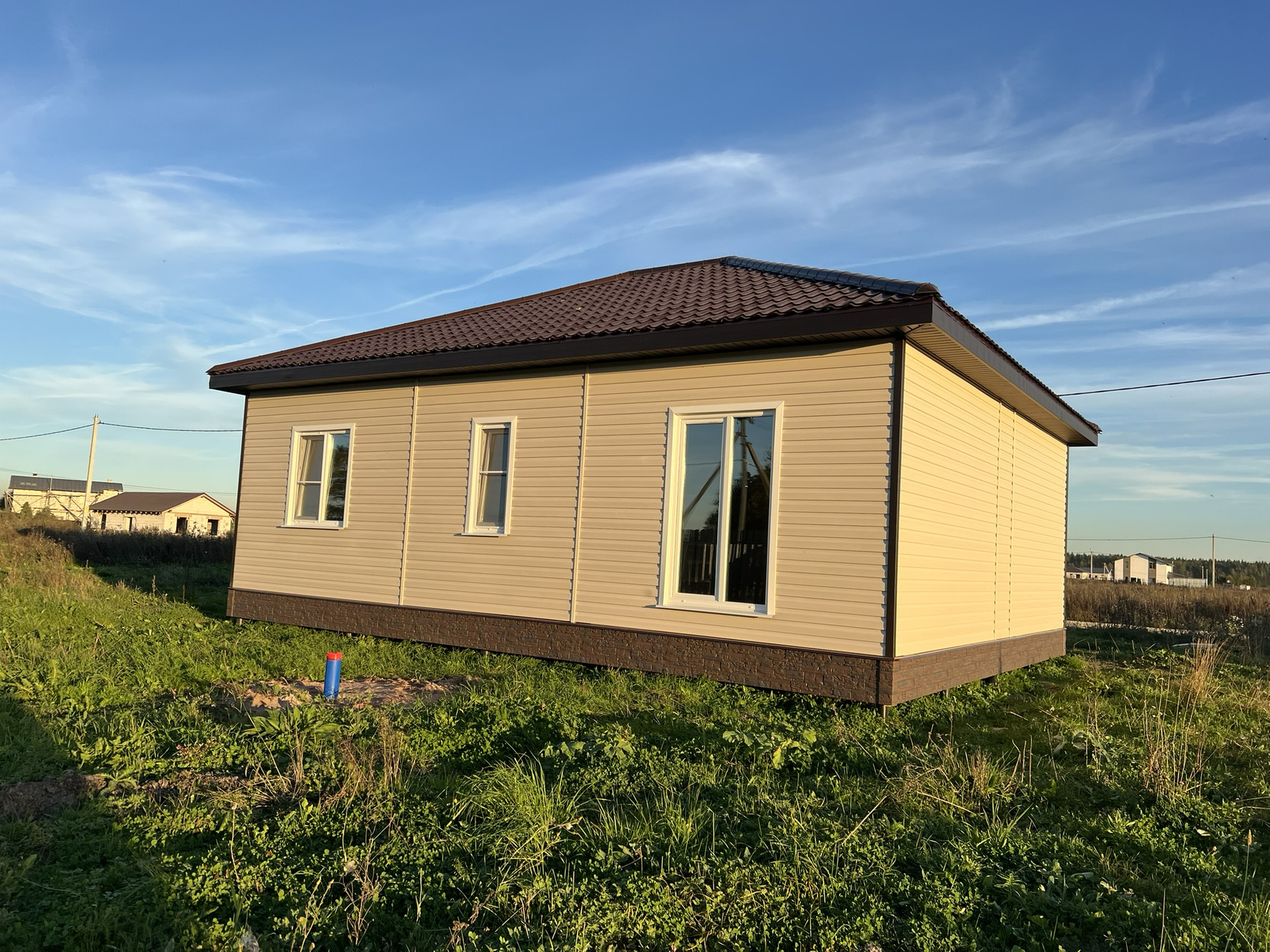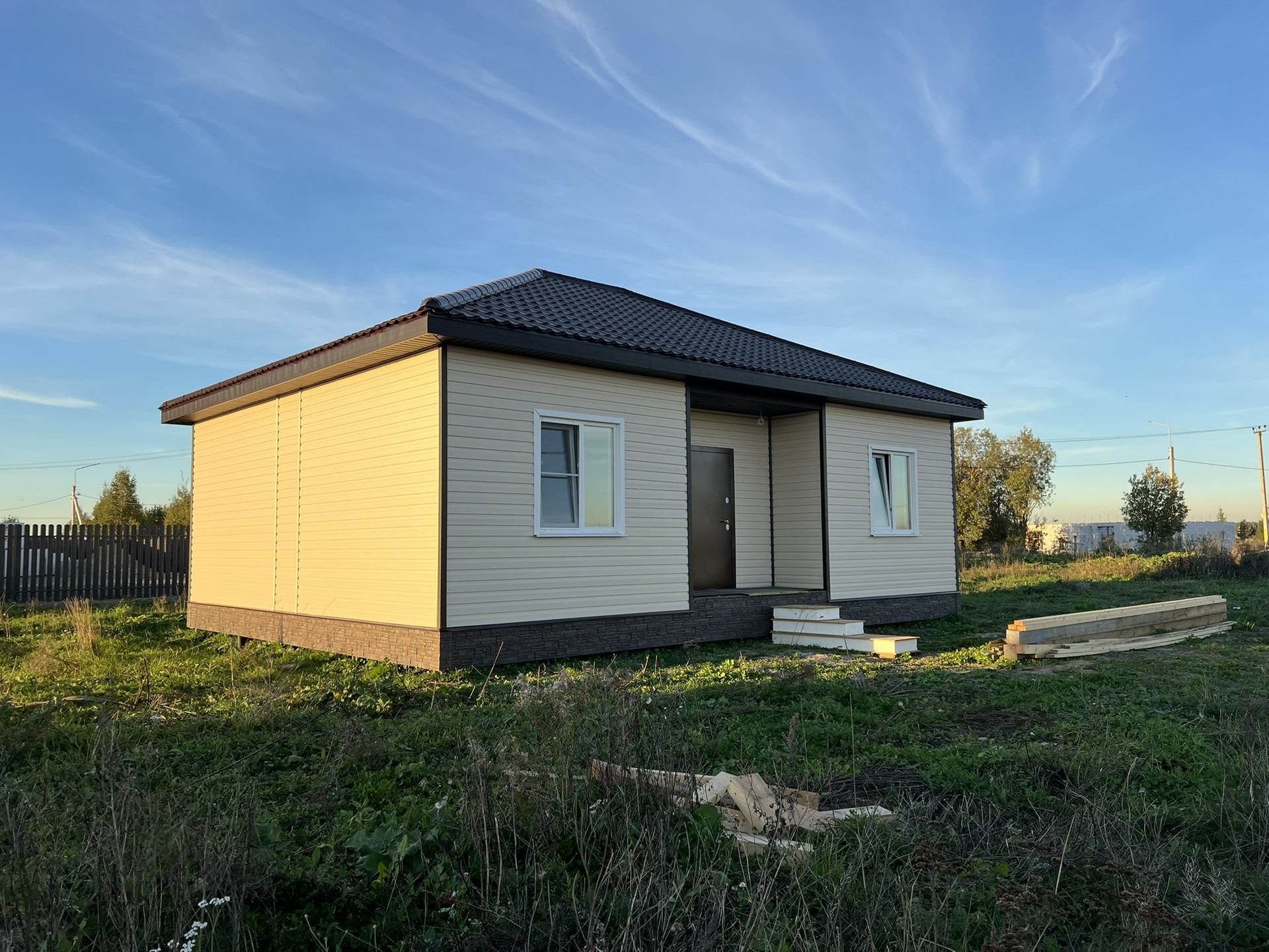 Внутри чистовая отделка, ламинат 33 класс, натяжные потолки, электрика разведена, розетки, светильники. Можно сразу переехать и жить, прямо как в квартире только лучше!