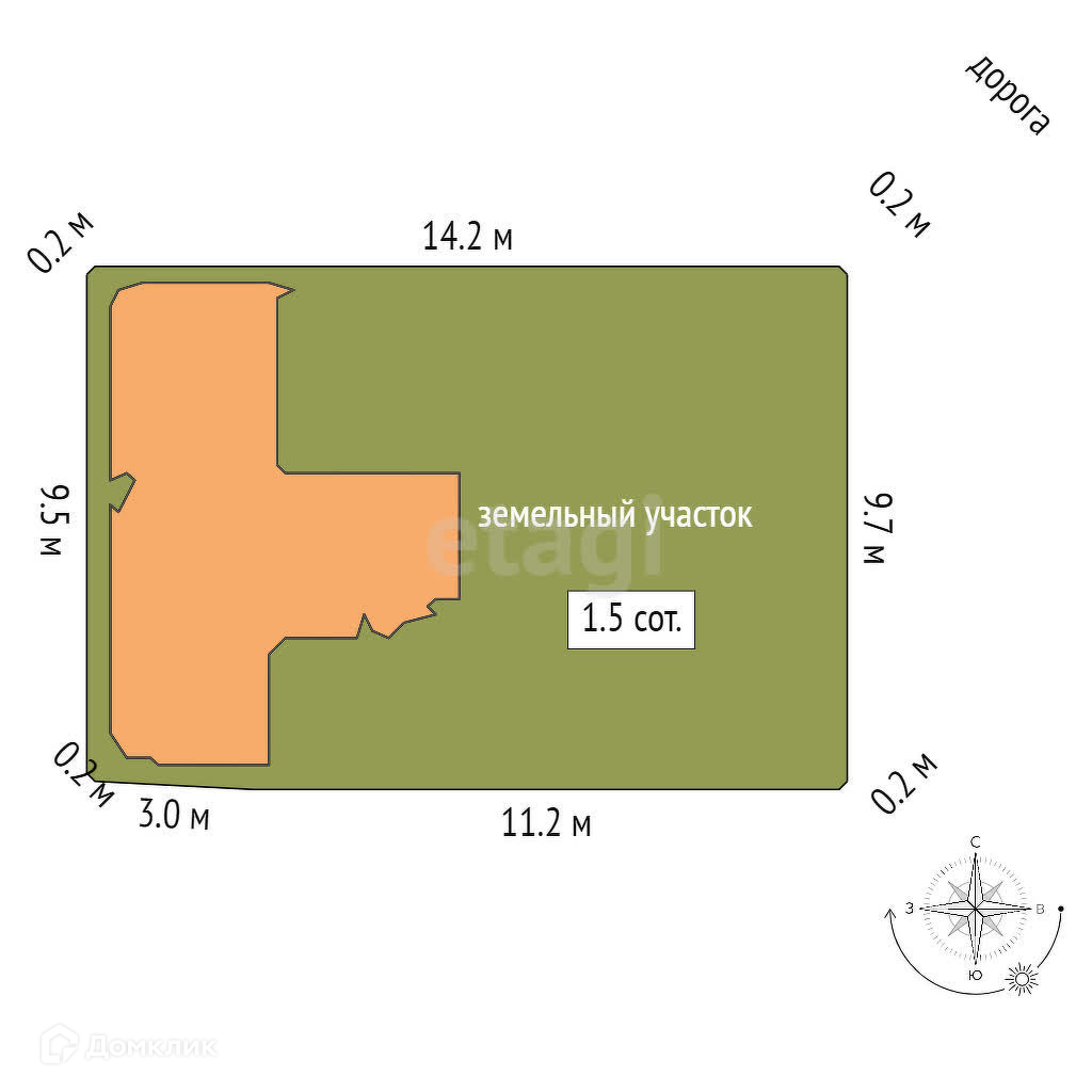 Площадь участка 2 сот.