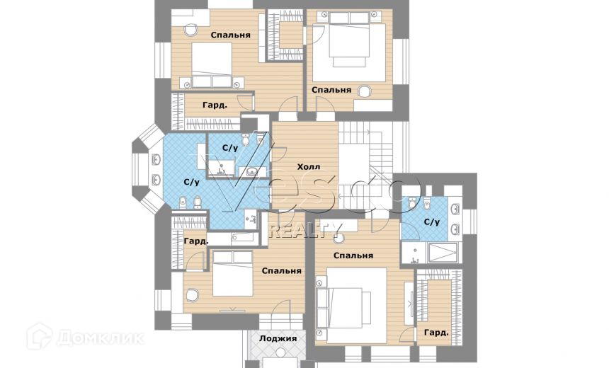 Мансарда: 2 спальни с гардеробными и с/у;