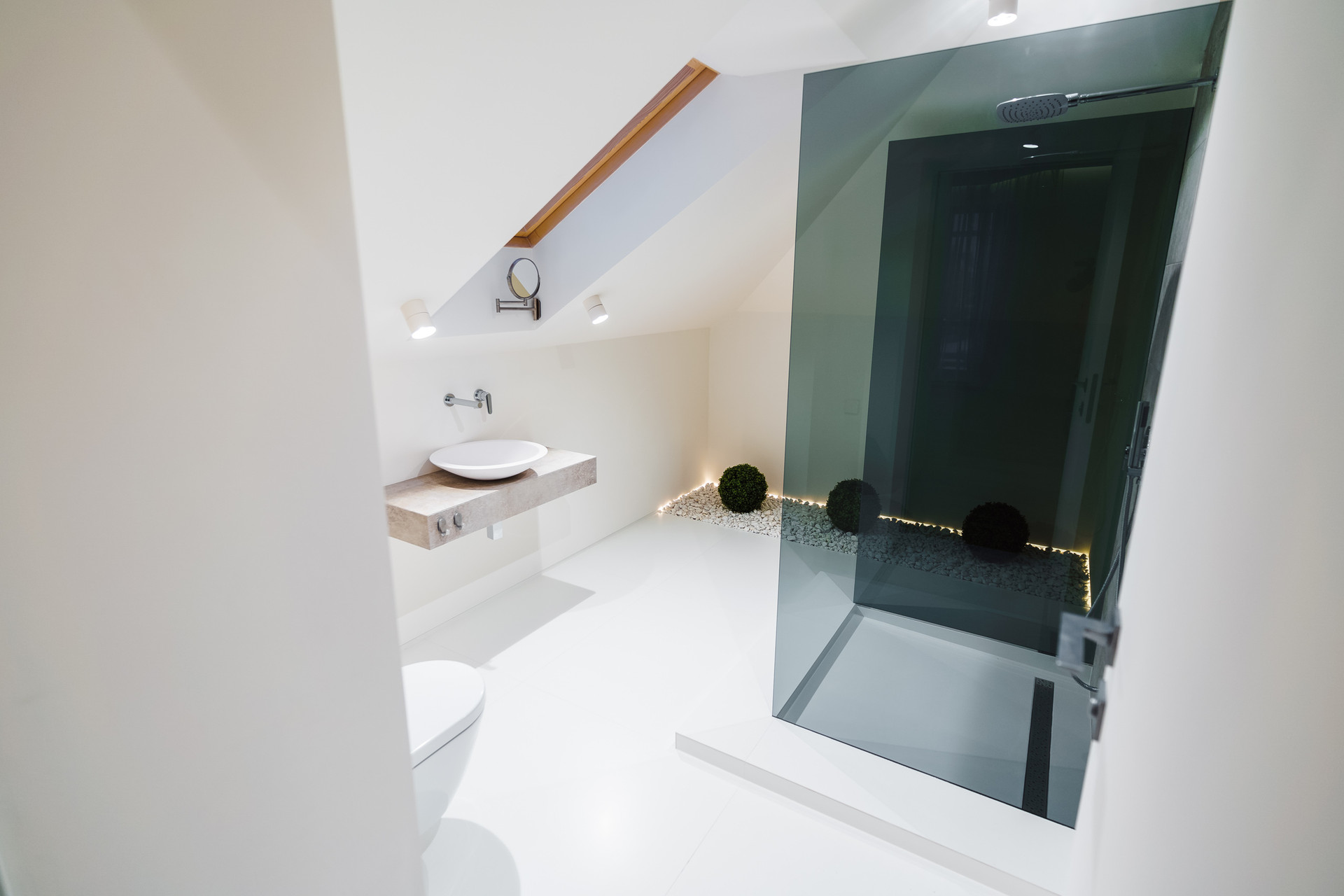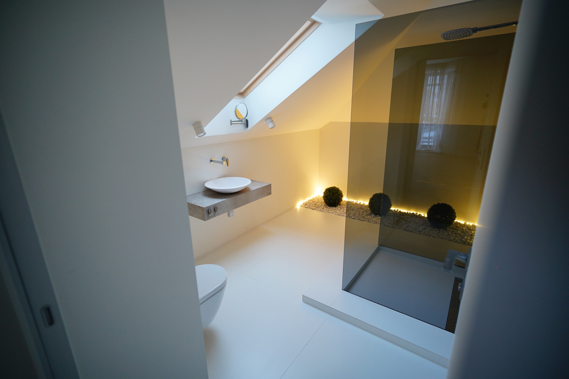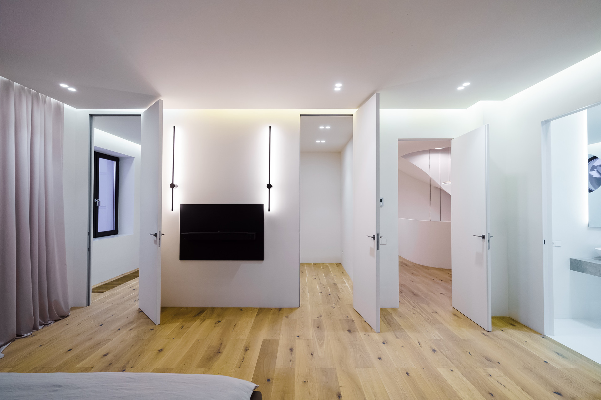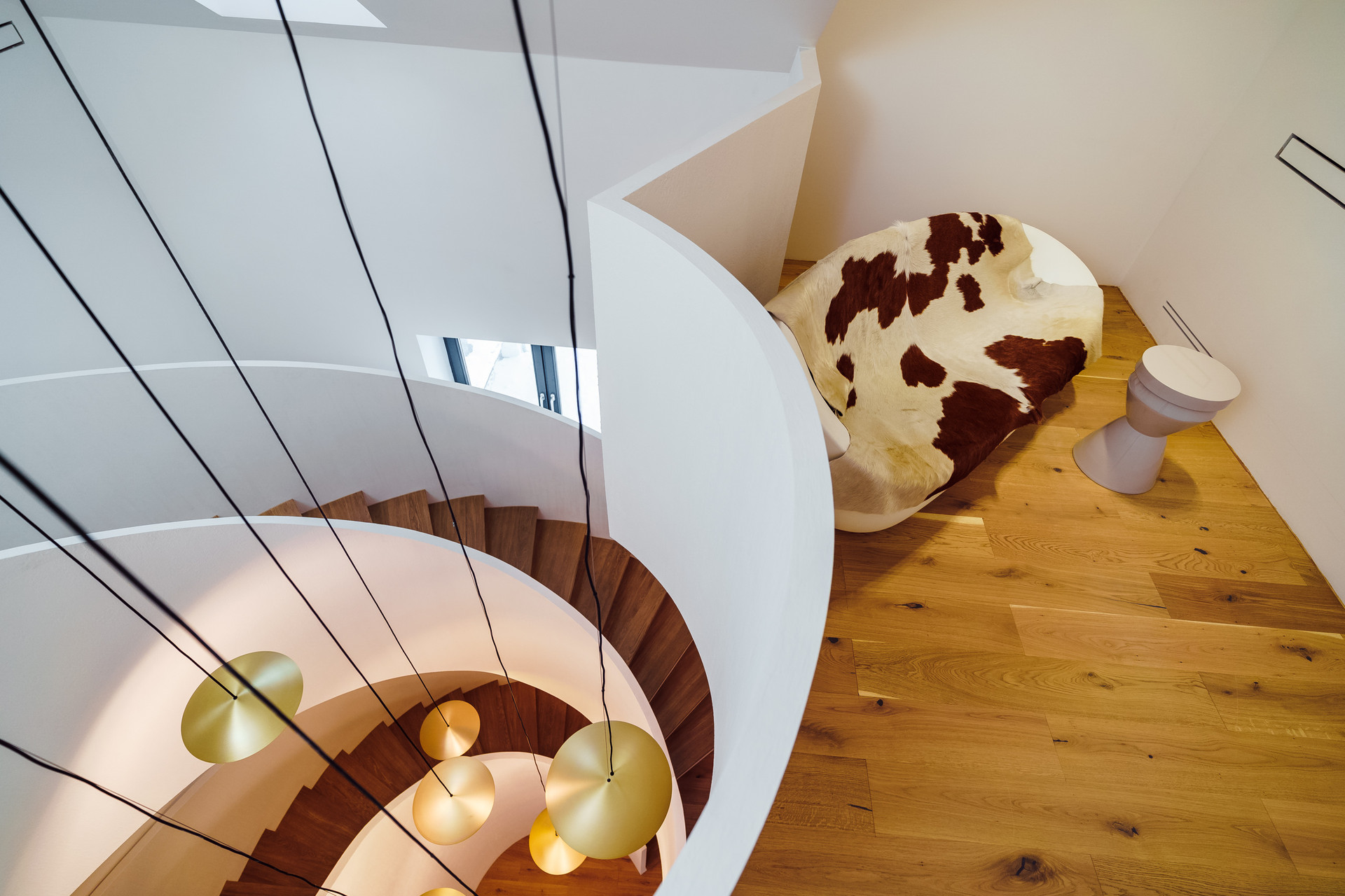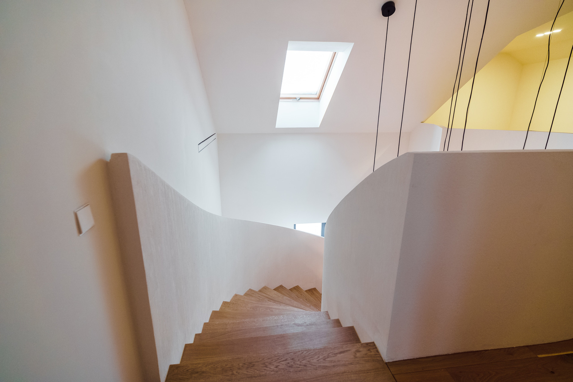 Парящая монолитная лестница с минималистичными светильниками Испанской фабрики LEDs C4 задает необыкновенный стиль всему дому.