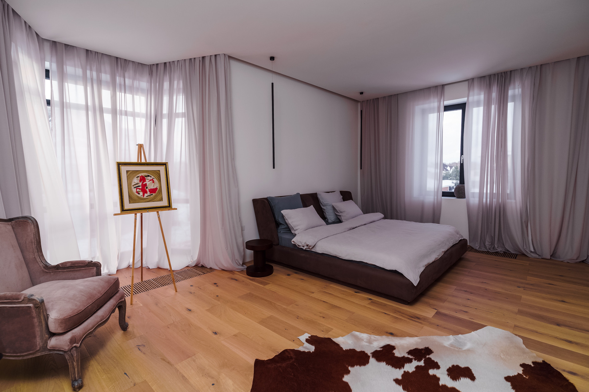 Второй этаж - Мастер - спальня с панорамным эркерным окном и биокамином, двумя раздельными гардеробными и большой мастер-ванной с отдельностоящей ванной Английского бренда BAGNODESIGN. Две жилые комнаты с отдельными системами хранения и санузлами (окна в каждом санузле). Холл с выходом на балкон;