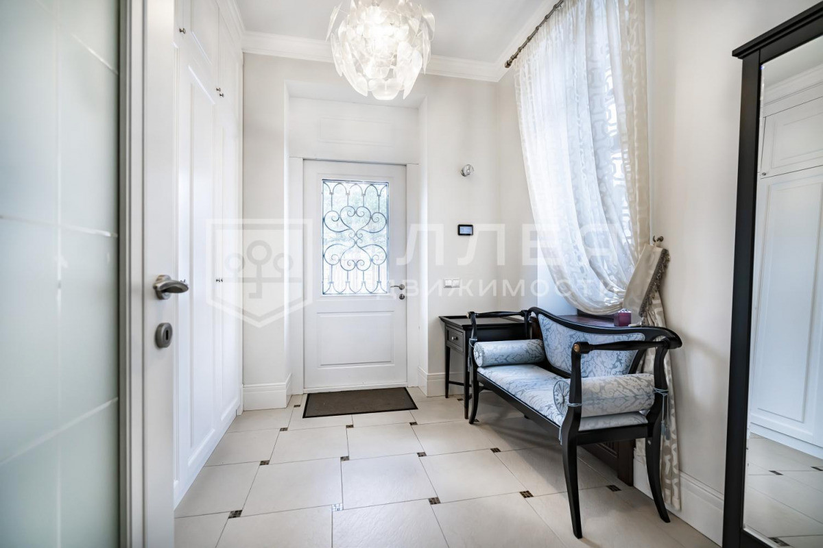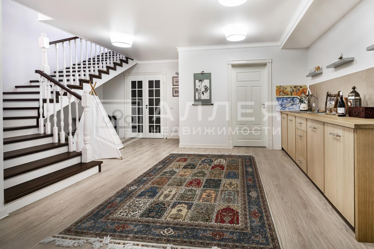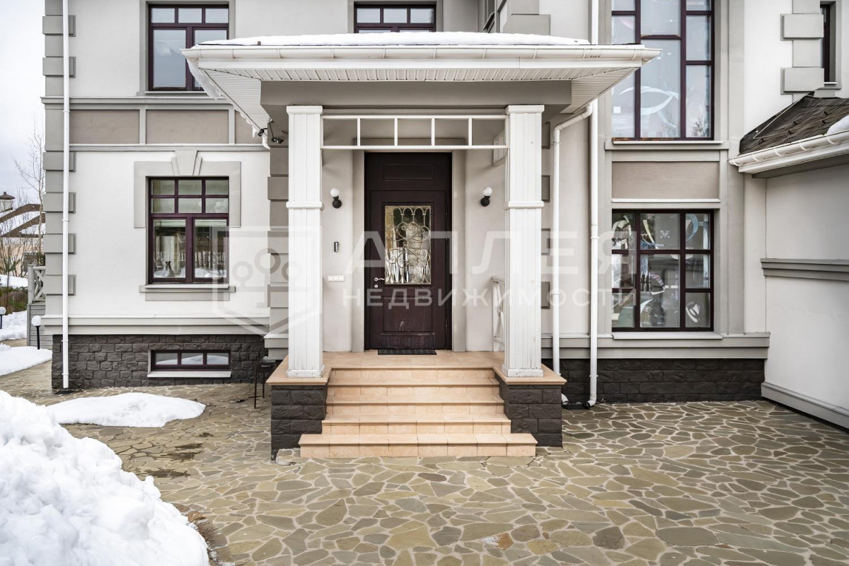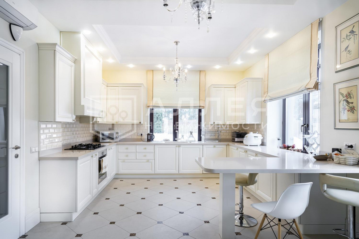 ДОМ: Просторный, светлый дом с дизайнерским интерьером под ключ в охраняемом поселке бизнес-класса. Дом полностью меблирован и готов к проживанию. В доме высокие потолки, удобная широкая лестница. В гостиной на первом этаже установлен дровяной камин. Из столовой-гостиной выход на застекленную веранду. Две спальни на первом этаже. В доме есть кабинет, кинотеатр, SPA - зона, отдельное помещение для персонала и дополнительная отдельная кухня. Установлены теплые полы, охранная сигнализация и система видеонаблюдения.