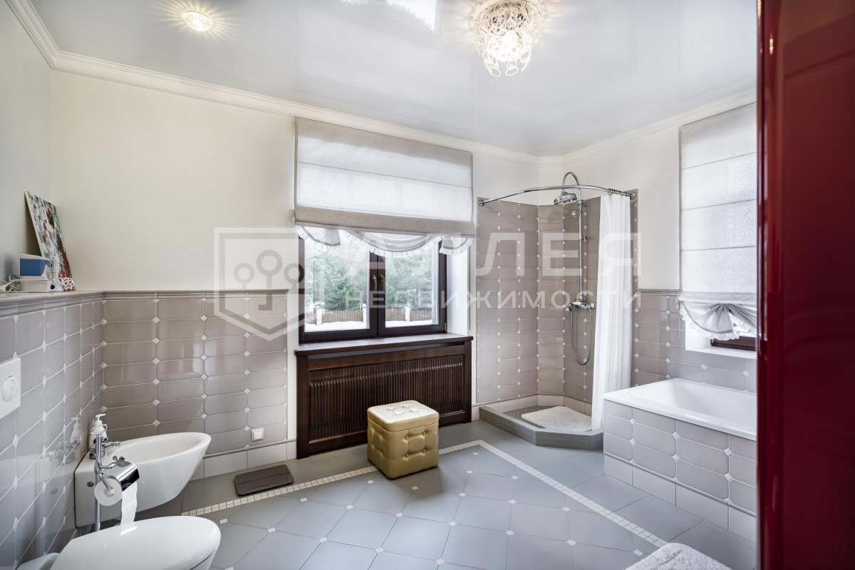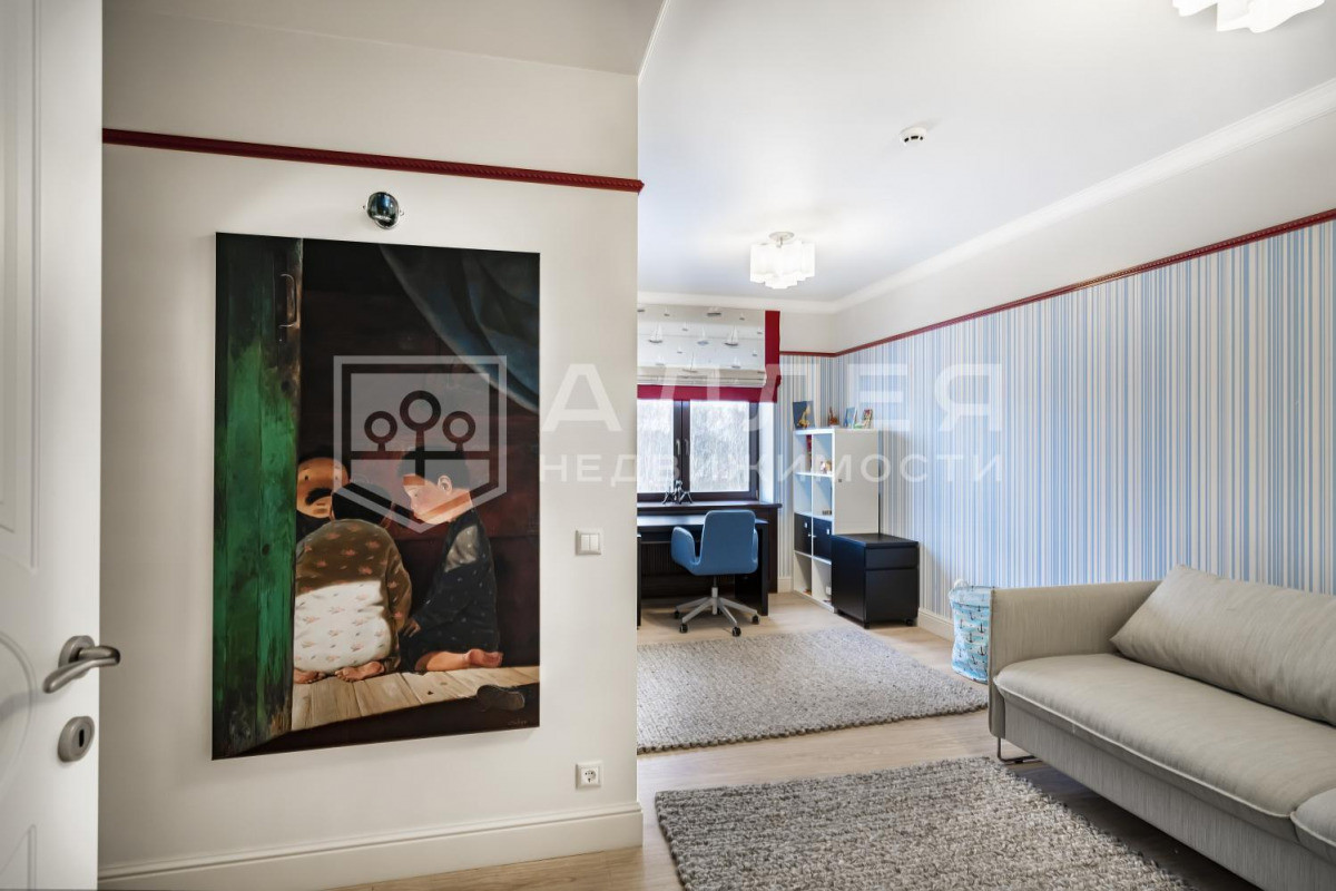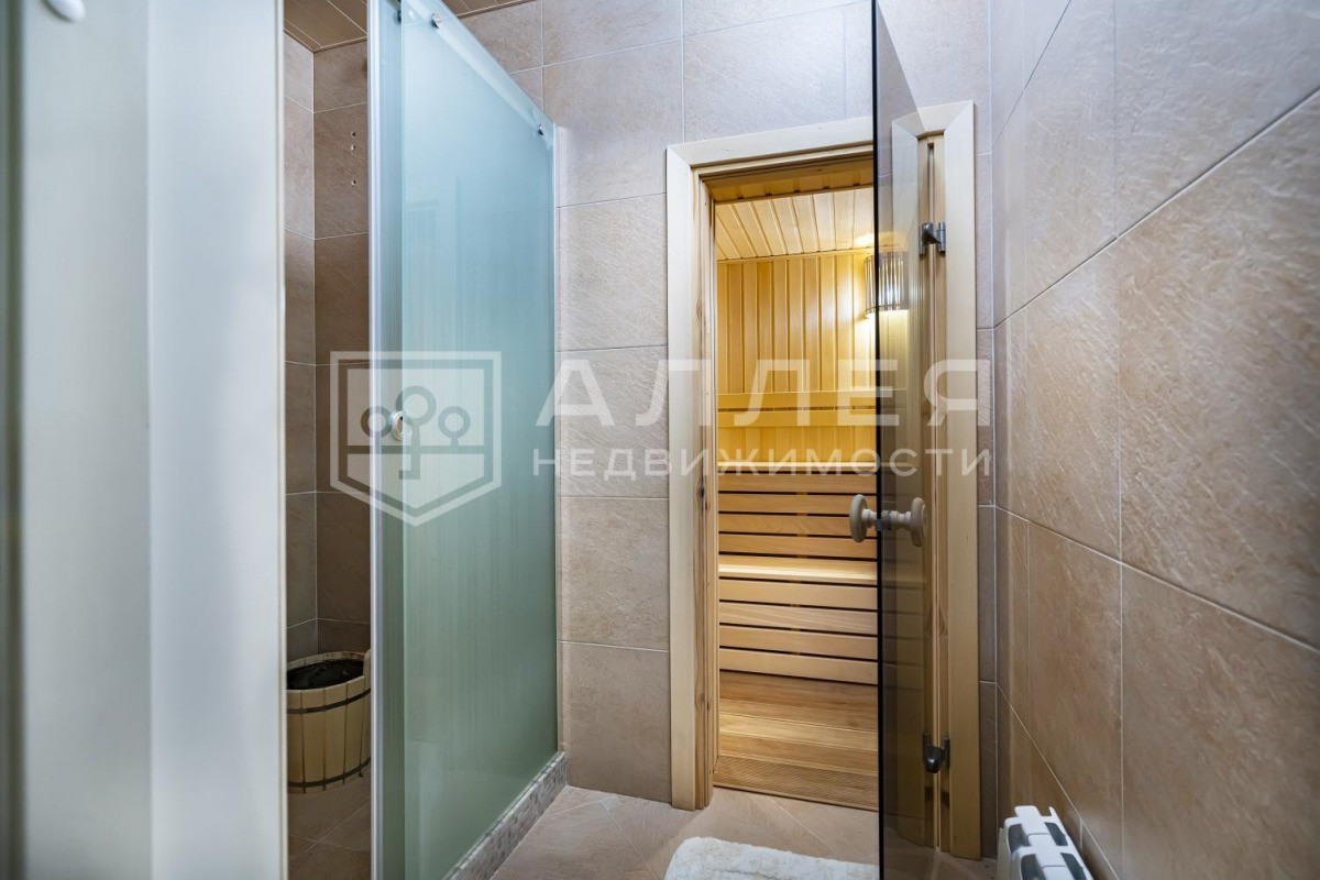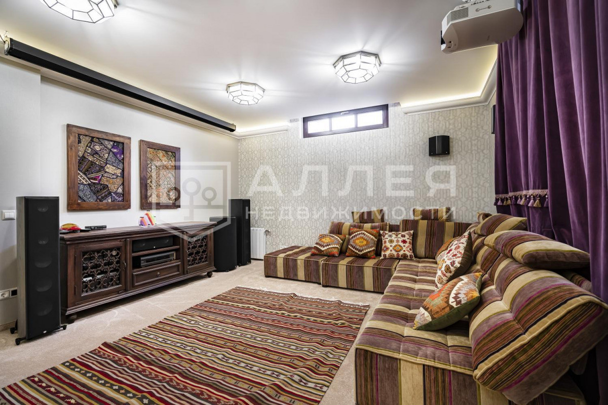 ДОМ: Просторный, светлый дом с дизайнерским интерьером под ключ в охраняемом поселке бизнес-класса. Дом полностью меблирован и готов к проживанию. В доме высокие потолки, удобная широкая лестница. В гостиной на первом этаже установлен дровяной камин. Из столовой-гостиной выход на застекленную веранду. Две спальни на первом этаже. В доме есть кабинет, кинотеатр, SPA - зона, отдельное помещение для персонала и дополнительная отдельная кухня. Установлены теплые полы, охранная сигнализация и система видеонаблюдения.