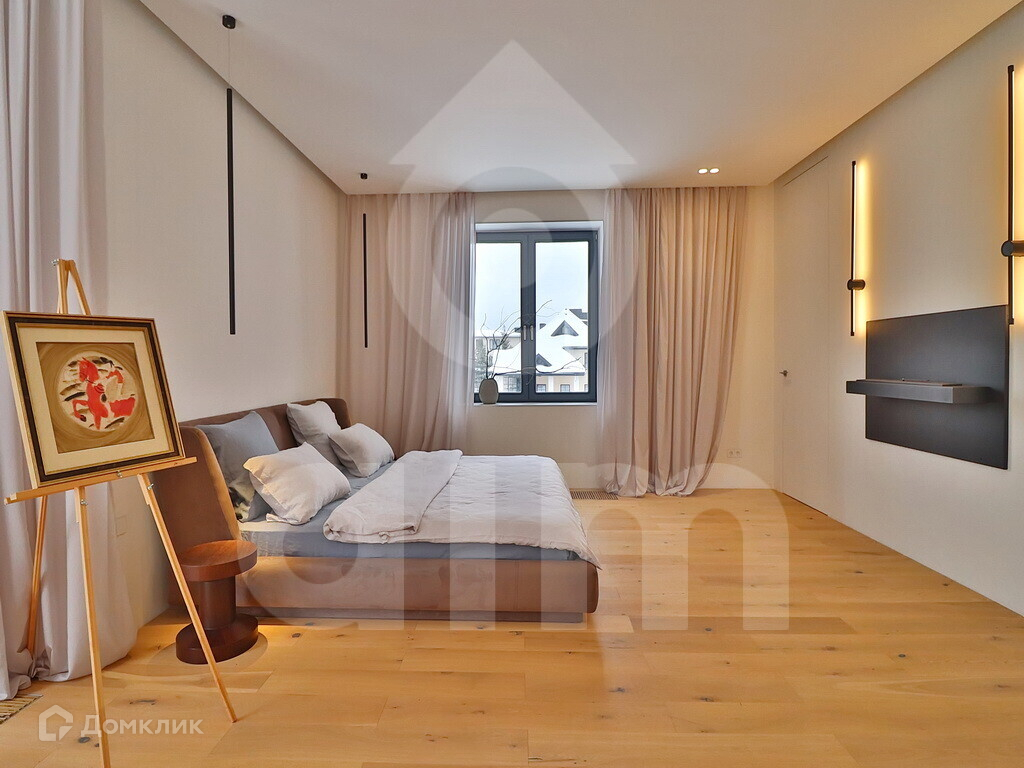 Новый стильный дом в охраняемом коттеджном поселке Крона! На участке выполнен ландшафтный дизайн, вымощены дорожки, посажены цветы и кустарники, а также установлено уличное освещение и автоматические ворота. В доме спланировано 5 спален со своими гардеробными и санузлами (мастер-спальня с ванной и 2-мя гардеробными).