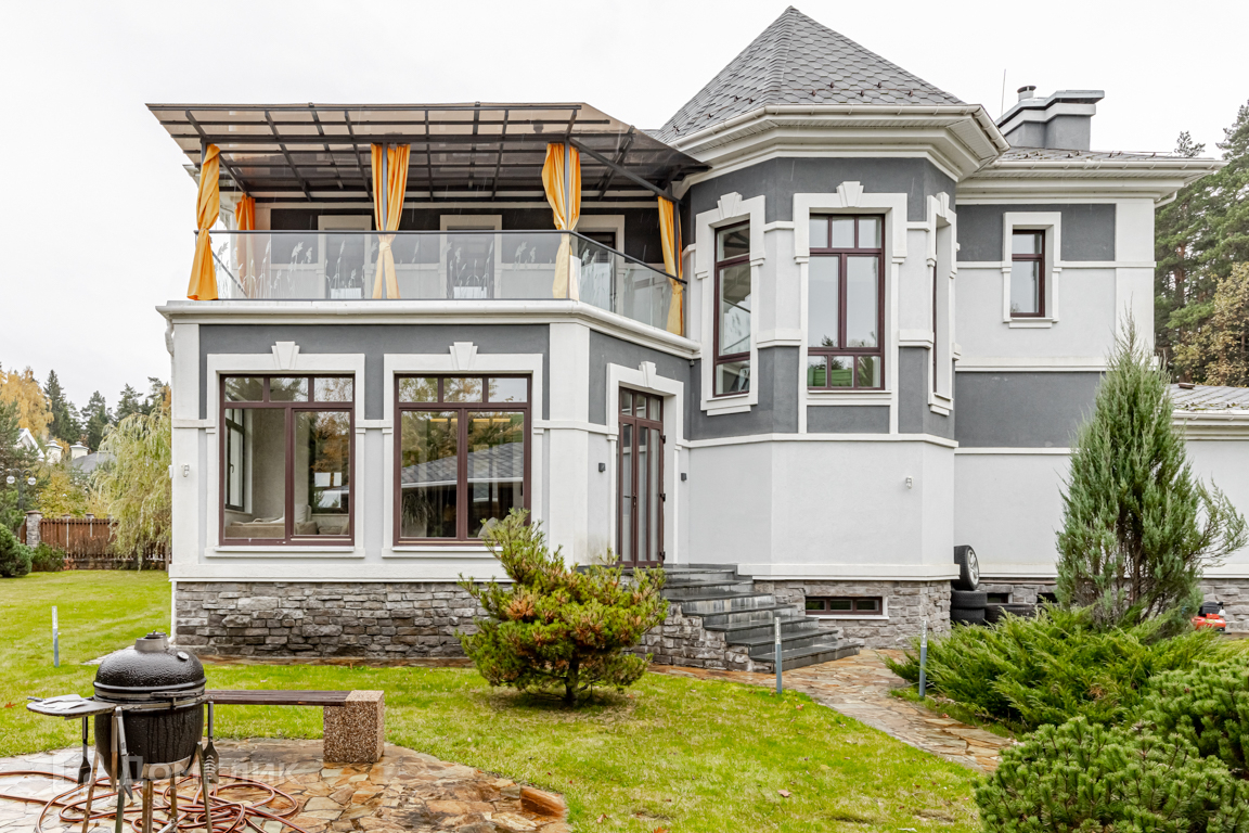 ID 12004 Четырёхуровневый дом в закрытом охраняемом посёлке с хорошей инфраструктурой. Расположен на тупиковой улице, примыкающей к лесу. Полностью меблирован и готов к проживанию. Высокие потолки. Из гостиной выход в зимний сад. Бар и тренажерный зал. Современный ремонт с использованием натуральных материалов: мрамор, дерево. Есть помещение для персонала. Охранная сигнализация, система видеонаблюдения. В котельной оборудование Buderus с обвязкой медью.