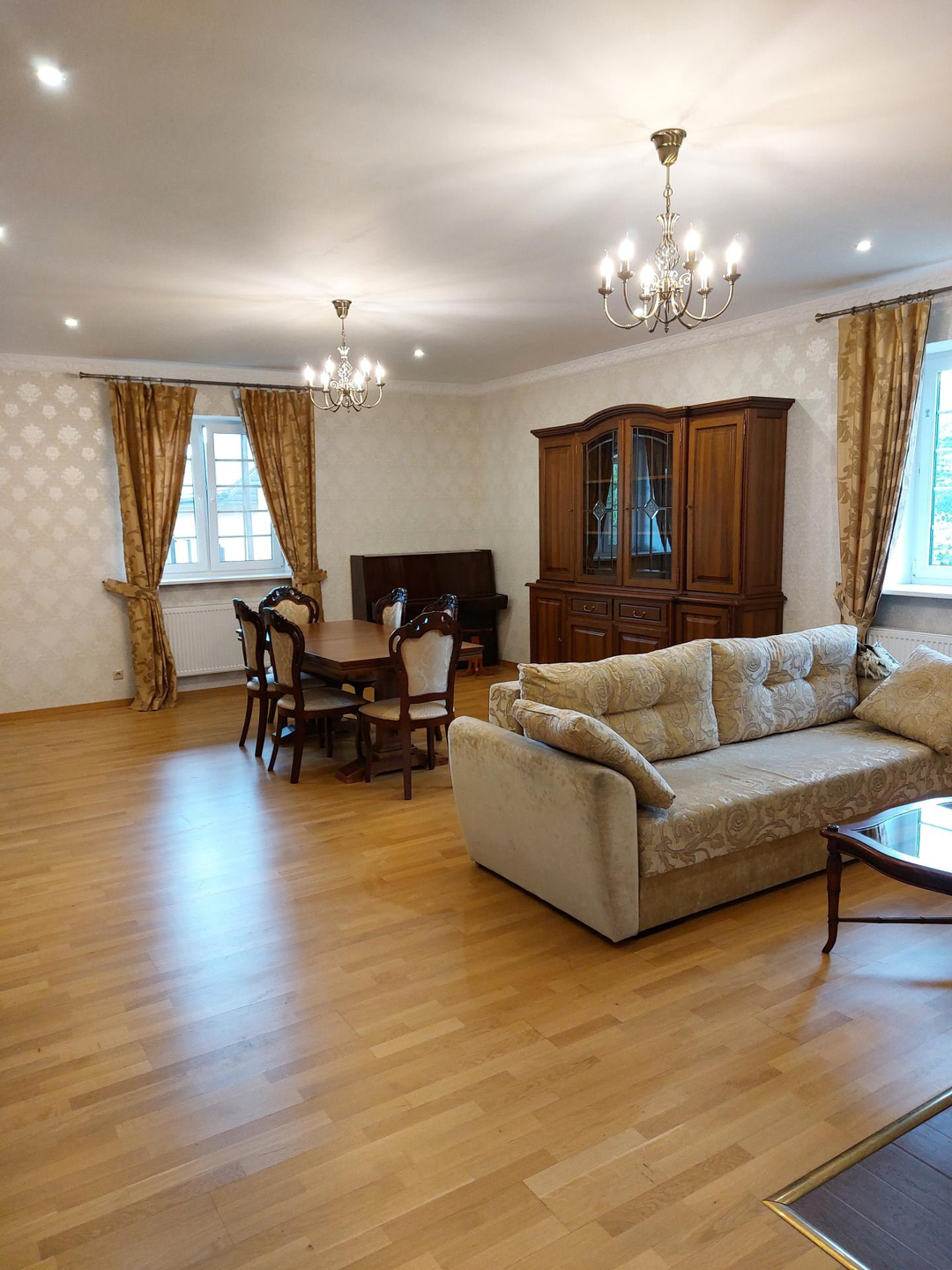 Дом полностью обставлен мебелью, всей необходимой техникой: кухонные принадлежности, 5 телевизоров, 2 стиральные машины, высококачественное котельное оборудование, собственная скважина 100 м., первоклассная очистка воды, септик, резервное электропитание, вентиляция, охранная сигнализация с возможностью ставить на охрану как весь дом, так и отдельно поэтажно.