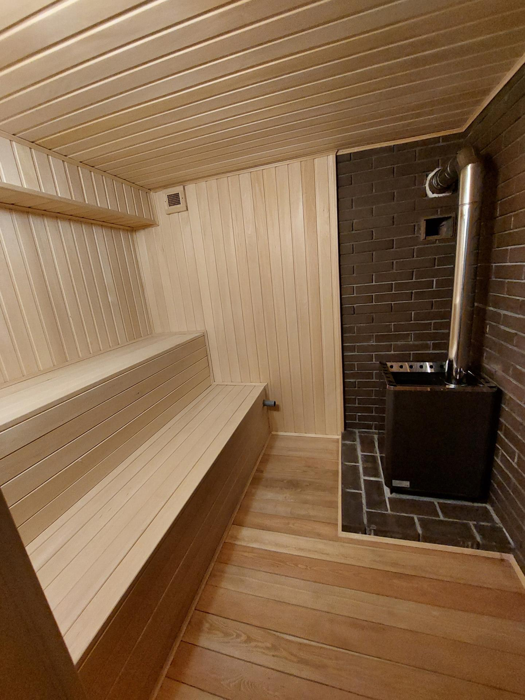 цокольный этаж –124 кв.м., сауна, комната отдыха, сан узел, котельная, водоподготовка, технические помещения.