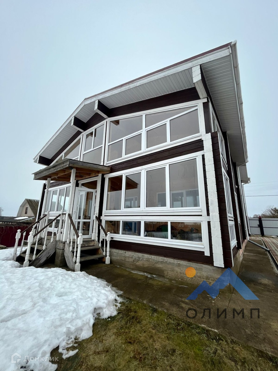 Первый этаж: большой холл, кухня столовая, комната, котельная, столовая, большая остекленная веранда. Второй этаж: 3 комнаты, одна с гардеробной, санузел, большая остекленная веранда. В доме имеется подвал.