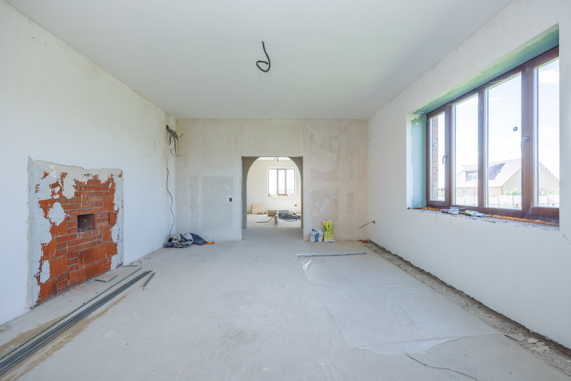 1 этаж: планируются тёплые полы, кухня, санузел совмещенный, место под камин ✔