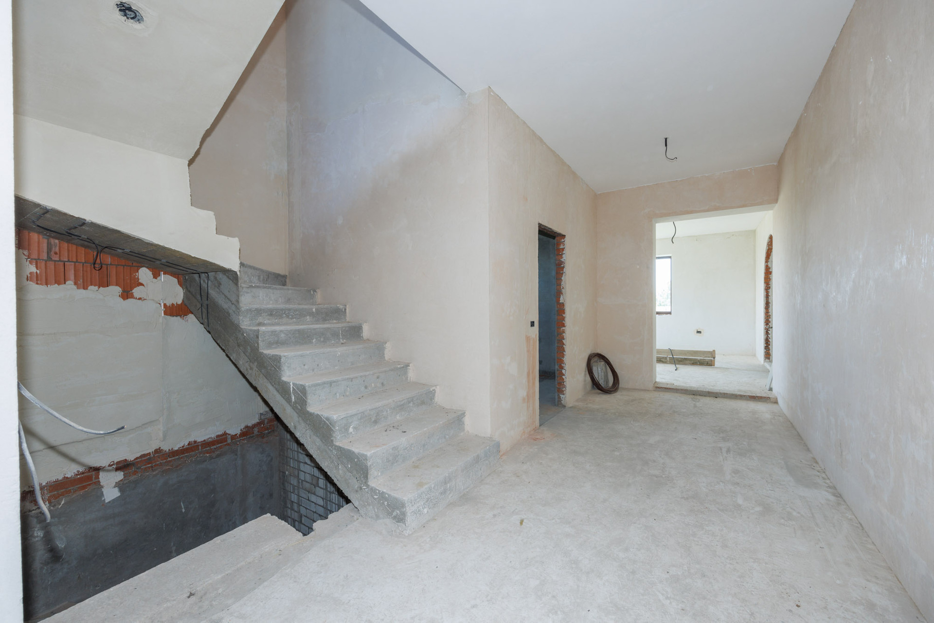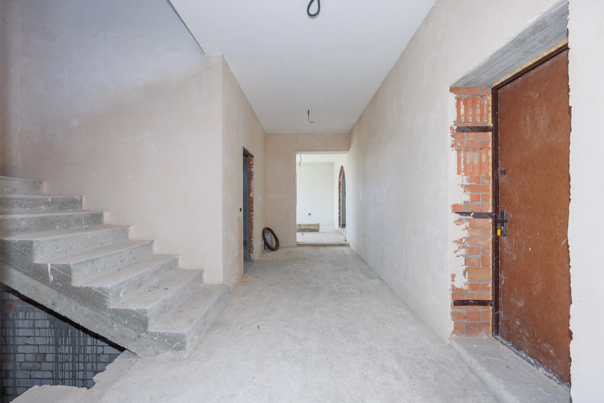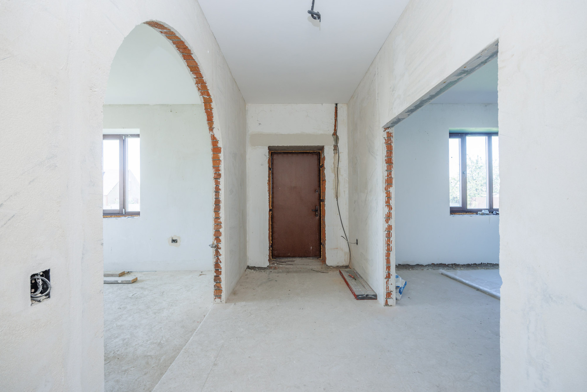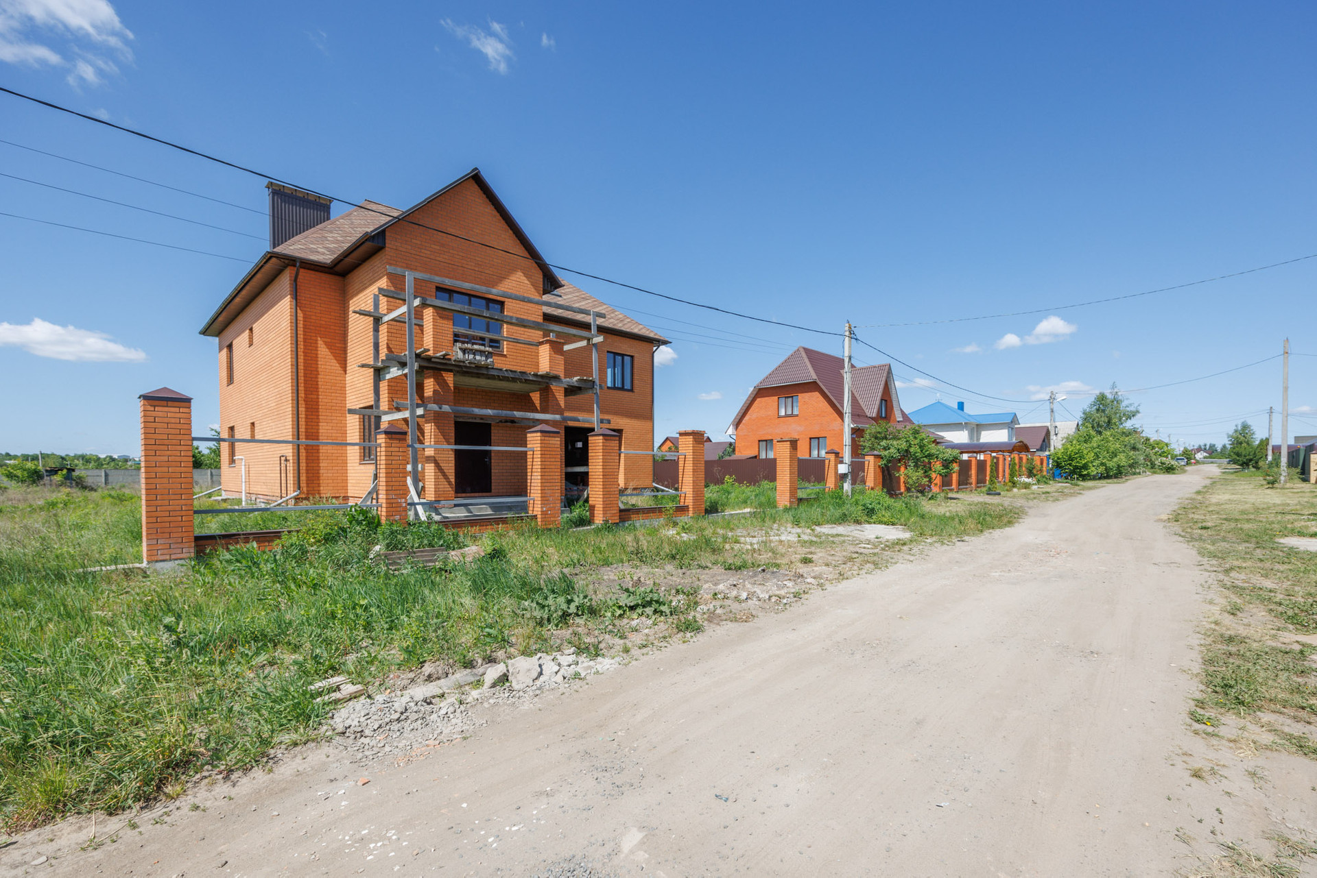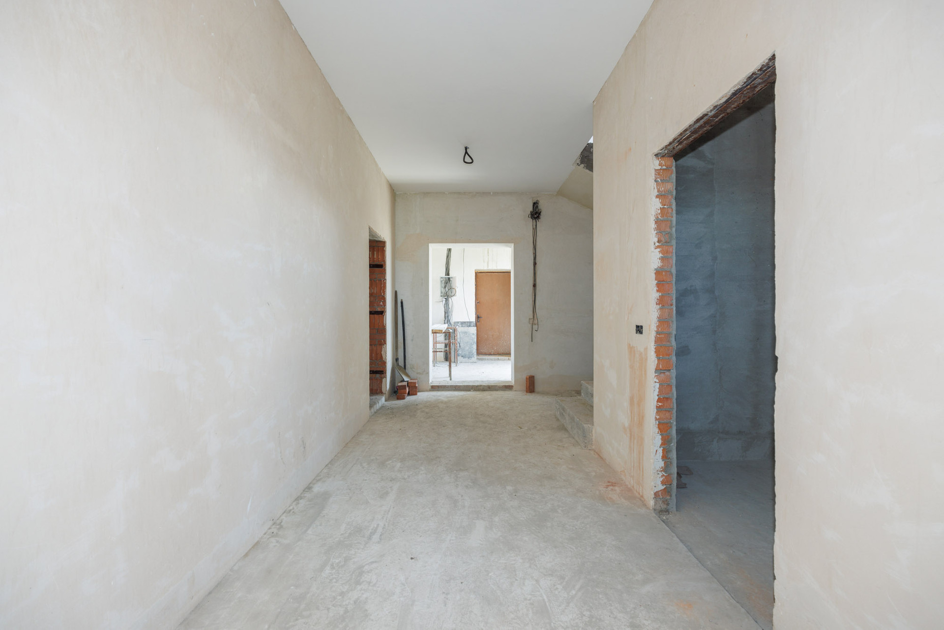 Дом в кирпичном исполнении: стены-керамоблок + красный кирпич, окна ЕВРО, потолок по всему периметру дома около 3.0 м., стены отштукатурены, подведена электрика, подведен газ ✔