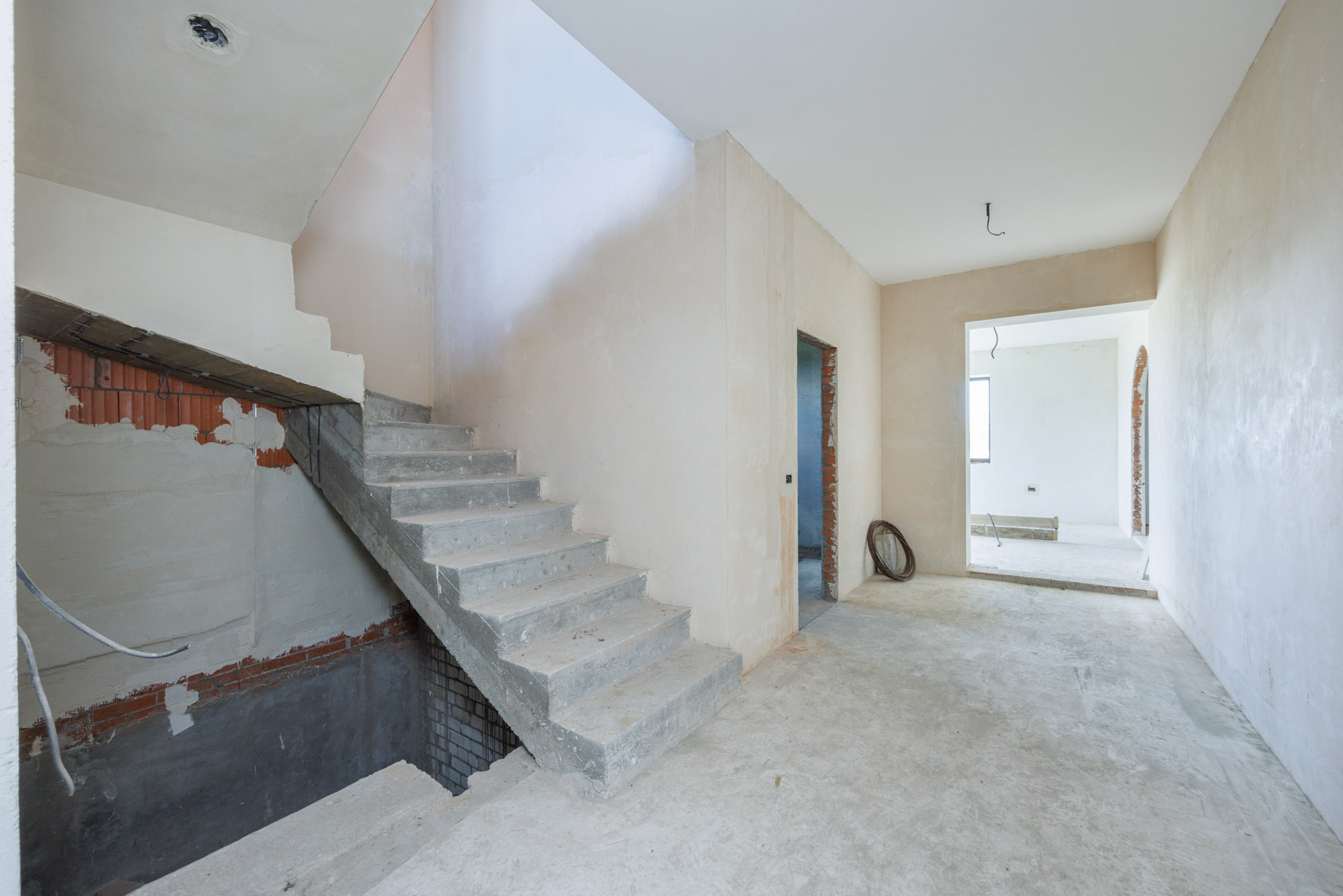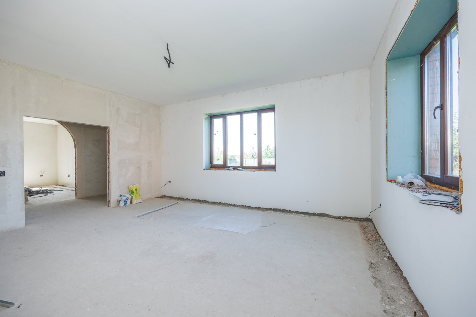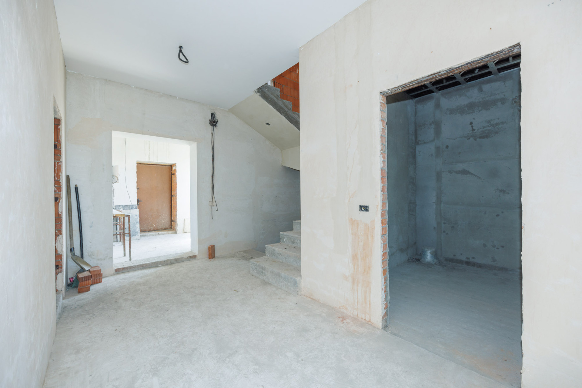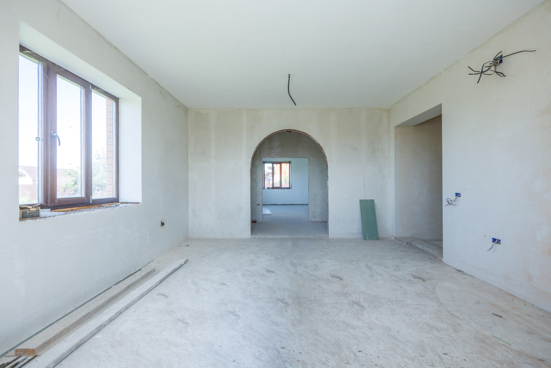 Дом в кирпичном исполнении: стены-керамоблок + красный кирпич, окна ЕВРО, потолок по всему периметру дома около 3.0 м., стены отштукатурены, подведена электрика, подведен газ ✔