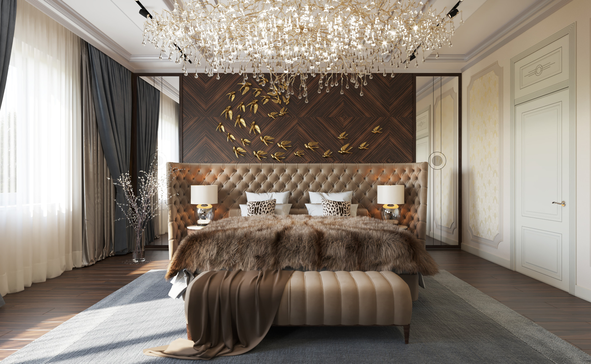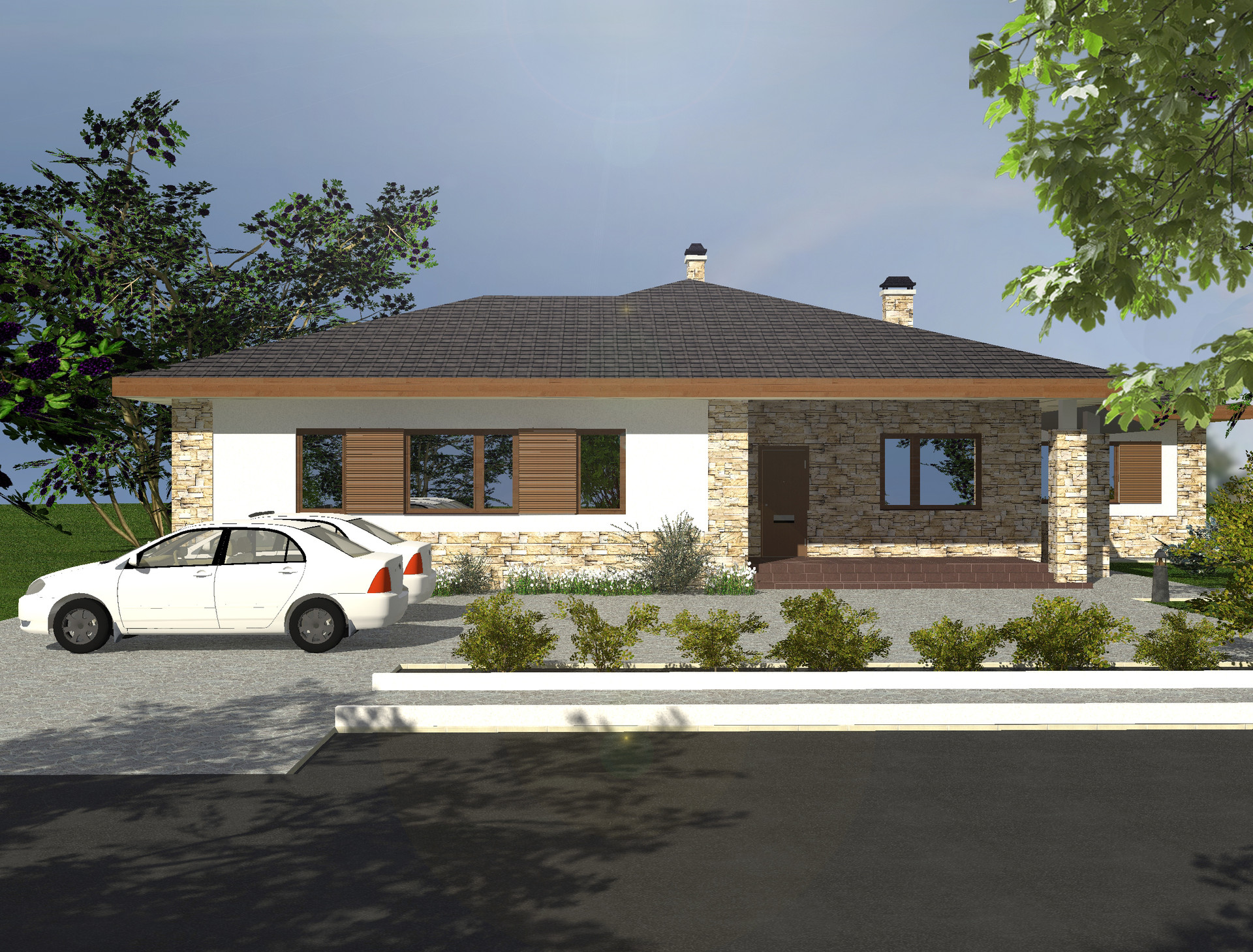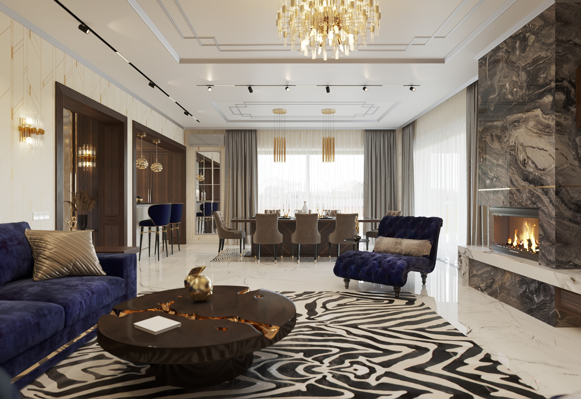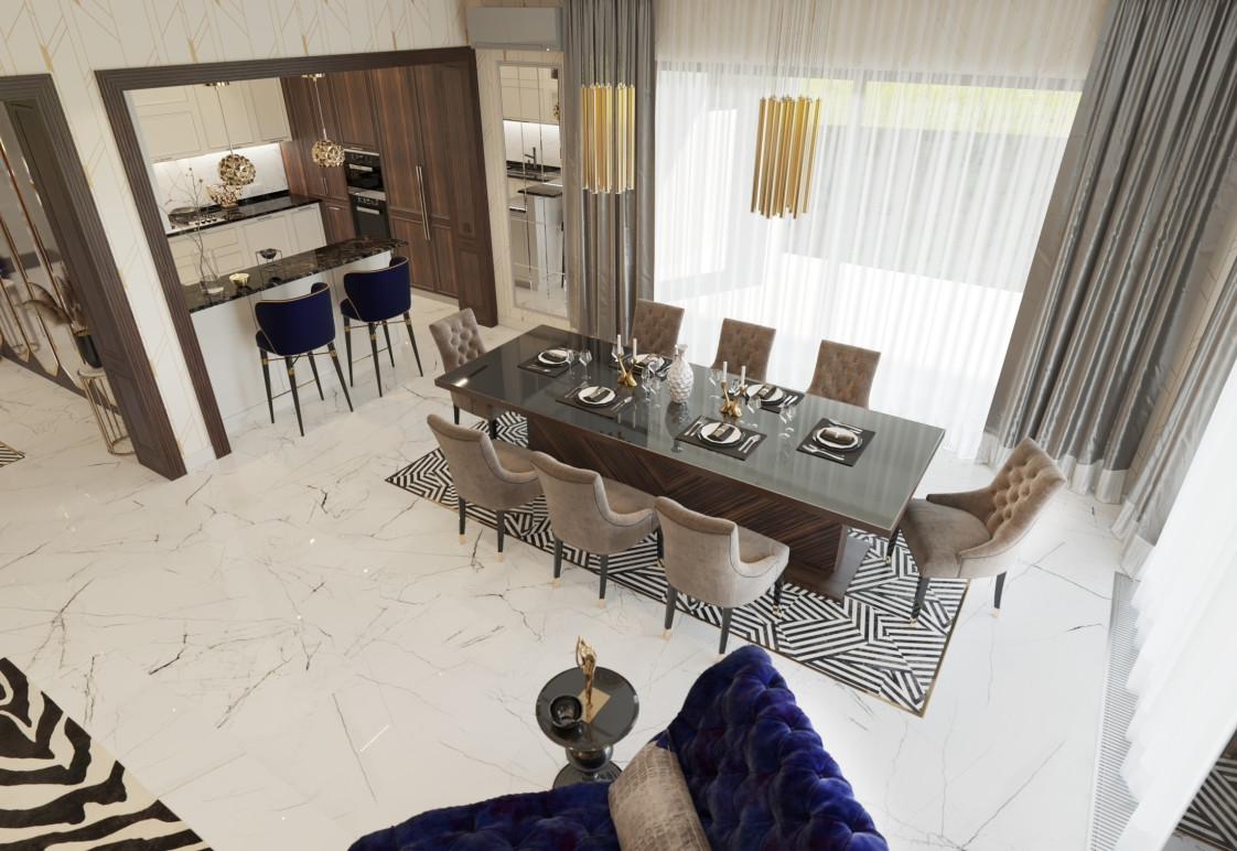 --- 1- этаж: гостиная 60 кв.м с дровяным камином с выходом на террасу, мастер- спальня 30 кв.м с индивидуальным с/у и гардеробной комнатой 7 кв.м, кабинет-гостевая 13 кв.м.
