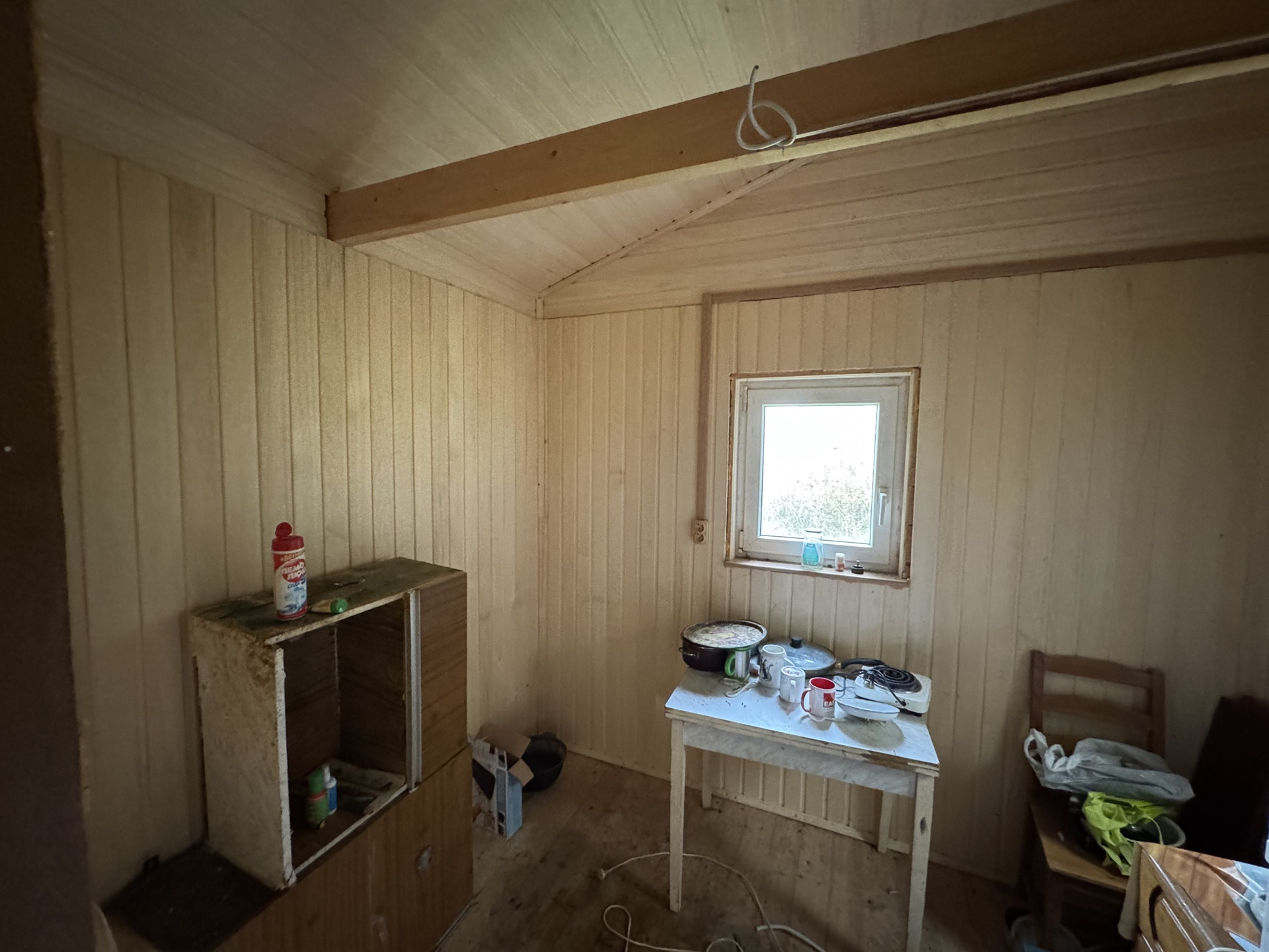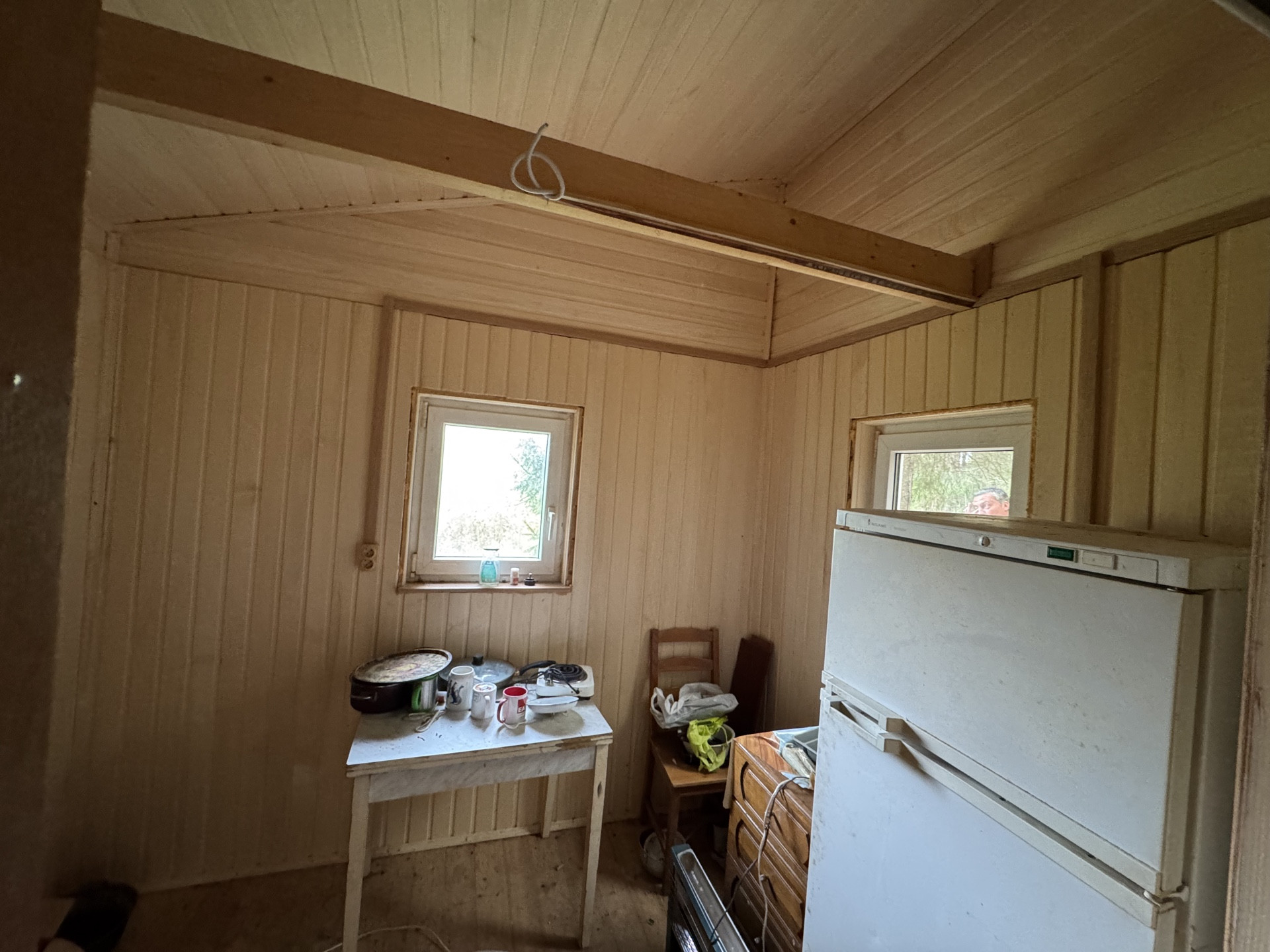 Дом из бруса 20 кв.м. с большой верандой и пластиковыми окнами. Фундамент-сваи. Электричество заведено.