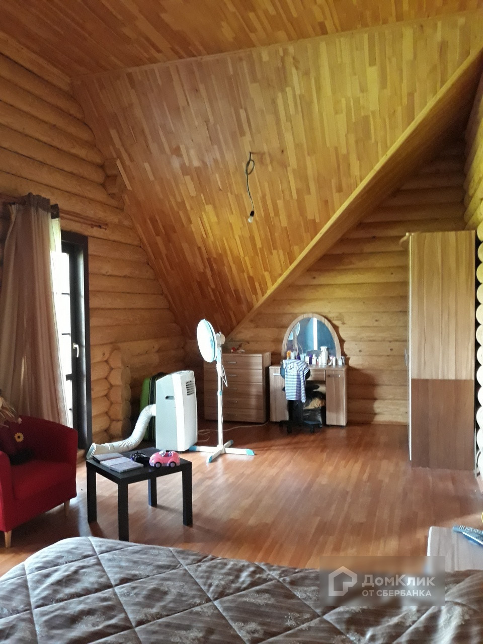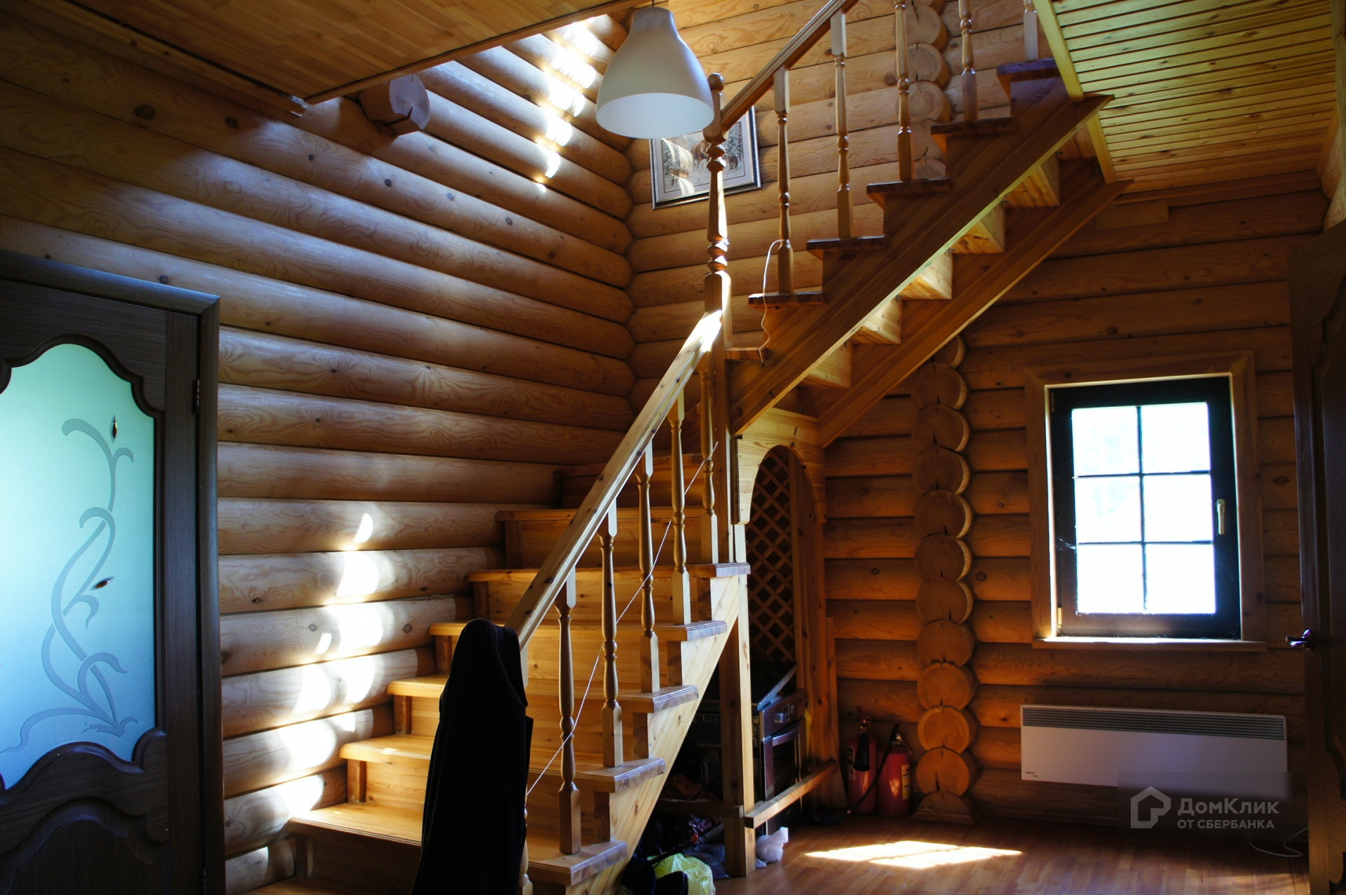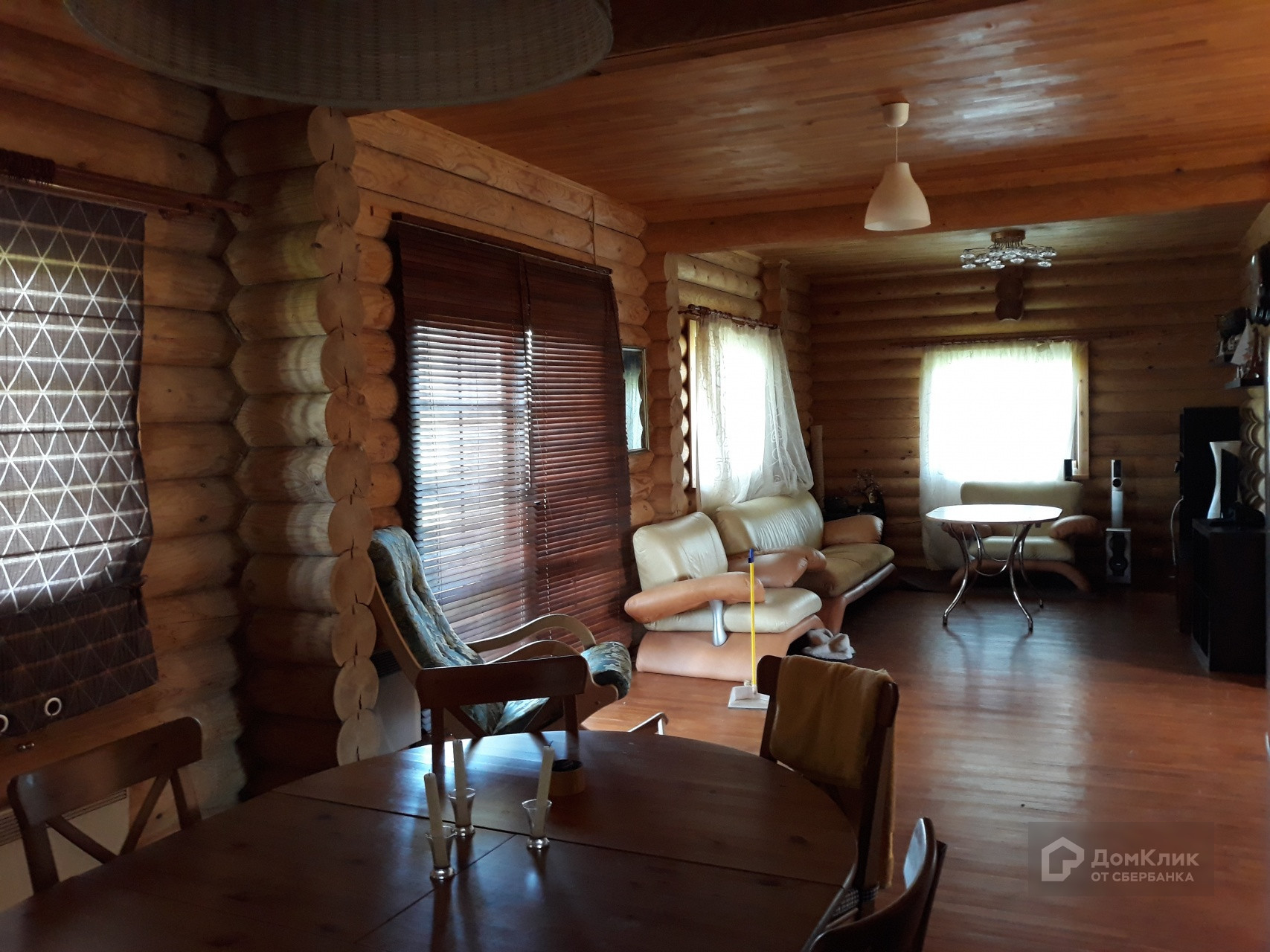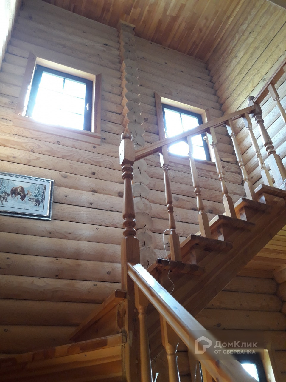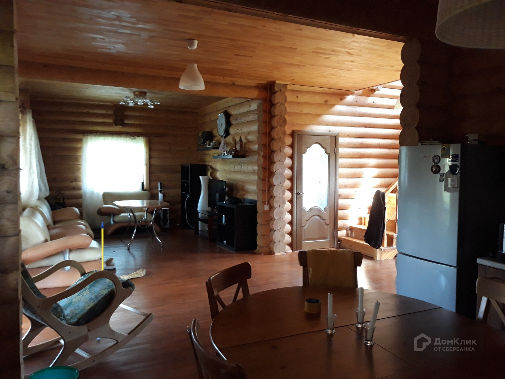 Двухэтажный дом выполнен в деревенском стиле. Стены из оцилиндрованного бревна диаметром 24 см. На первом этаже располагаются прихожая, коридор, две жилые комнаты и кухня. На втором, две жилые комнаты. Санузлы есть на каждом этаже. Высота потолка первого этажа 3,15 м. Второго - 3,85 м!