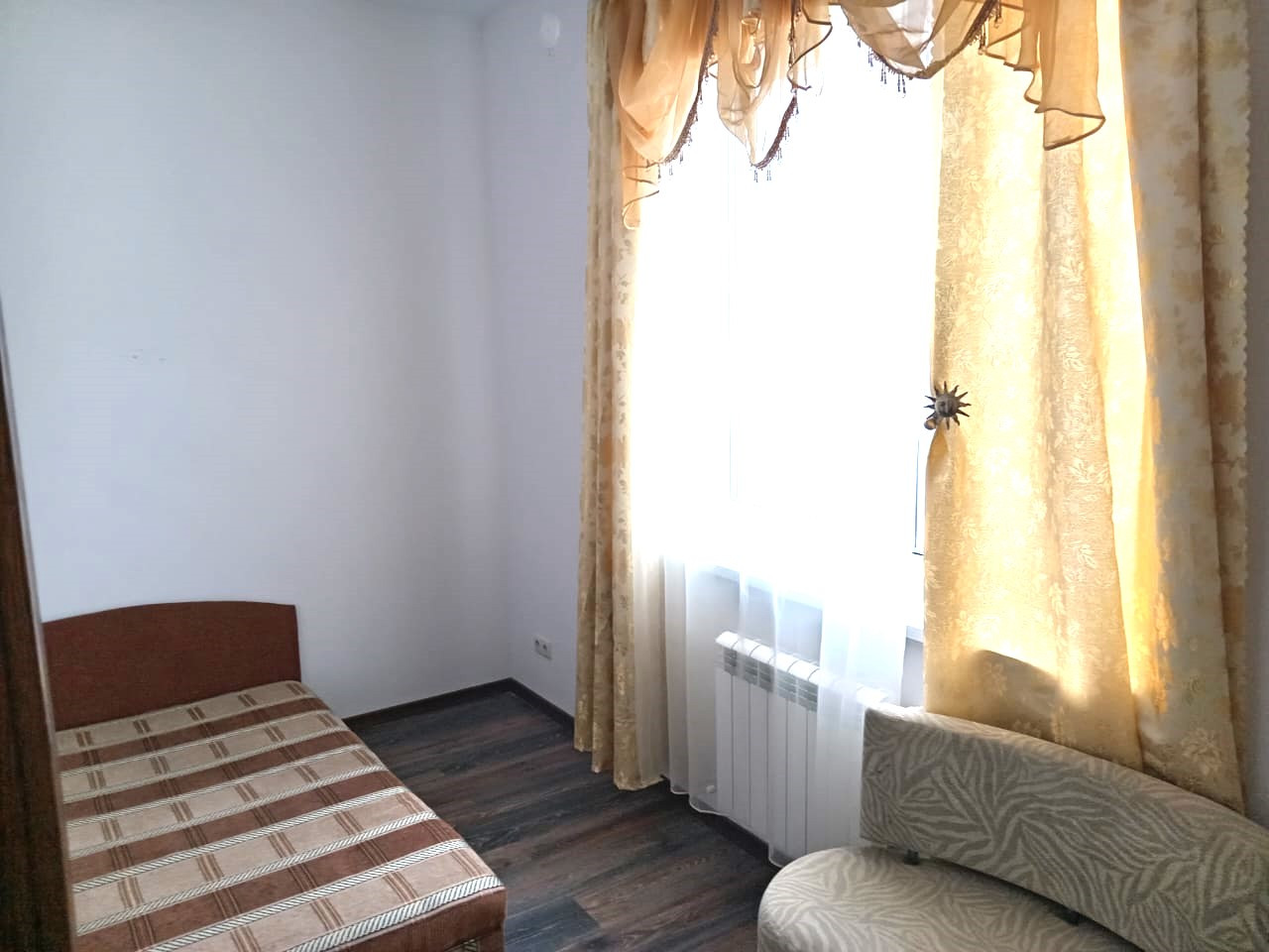 Окна пластиковые, пол ламинат-плитка.
