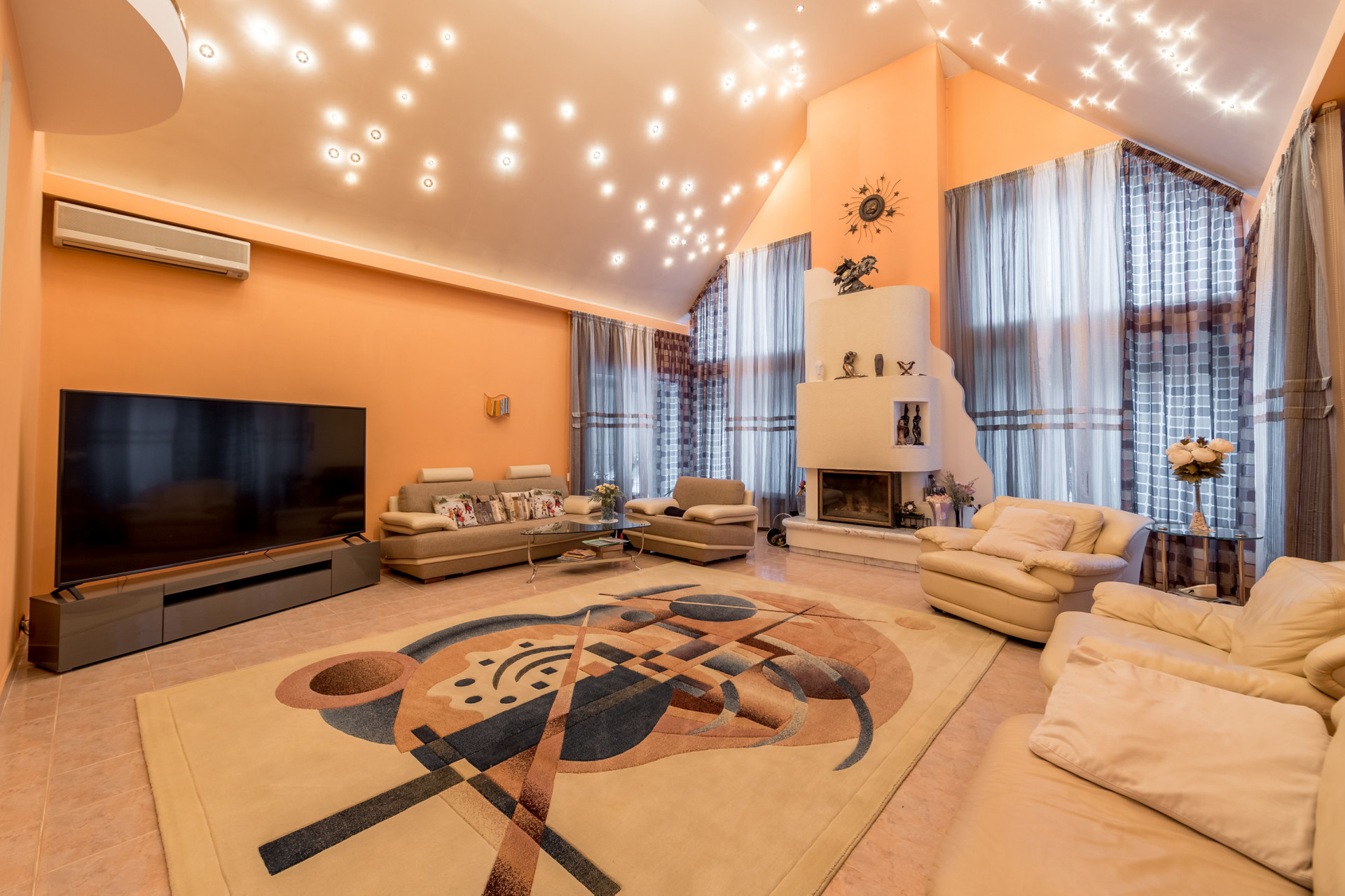 - просторная гостиная с камином и вторым светом;