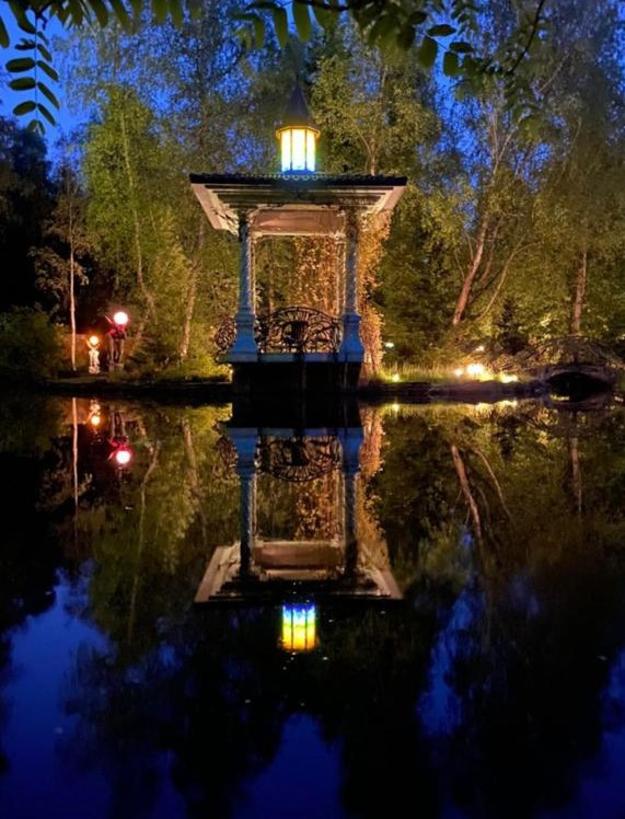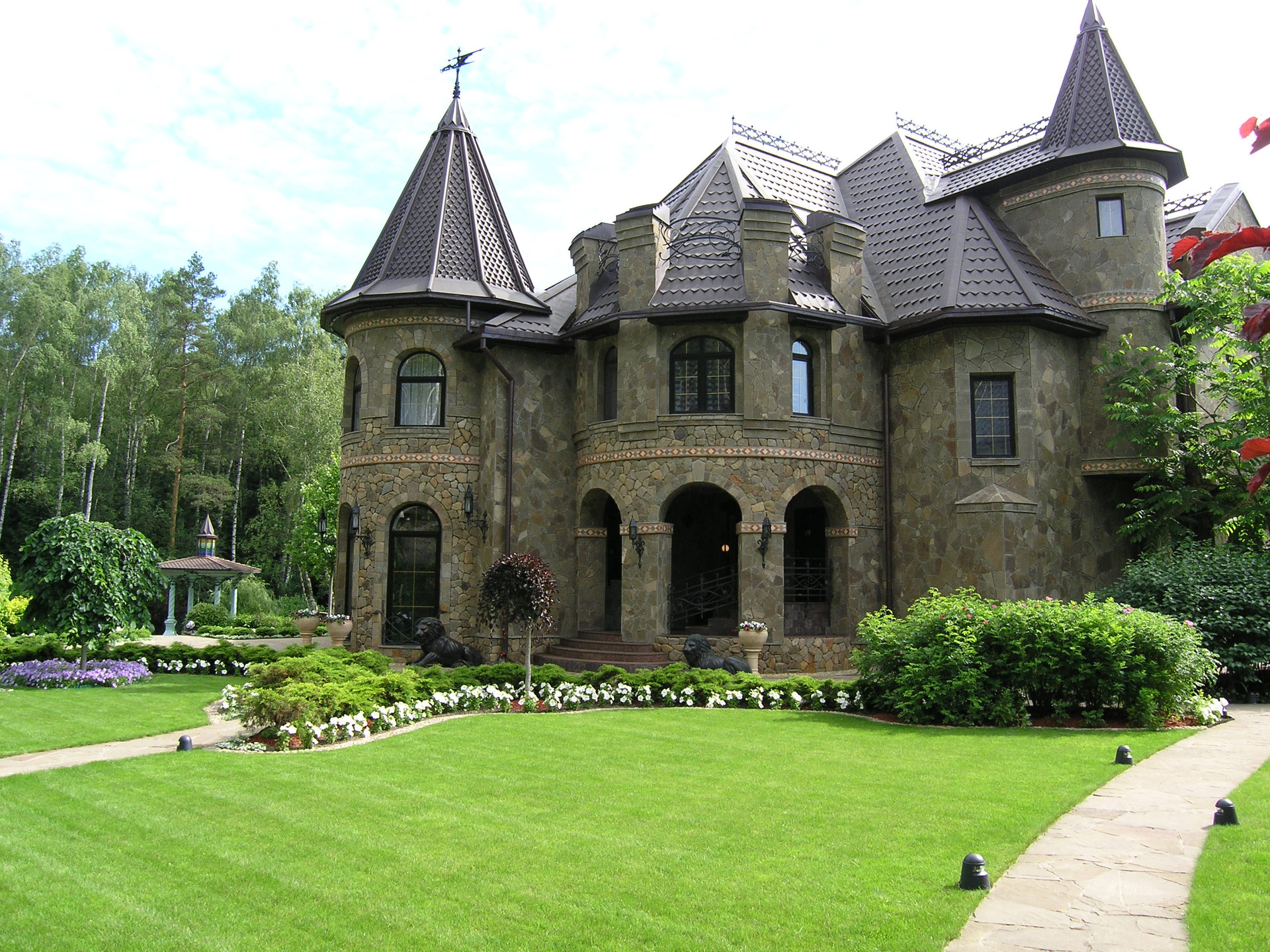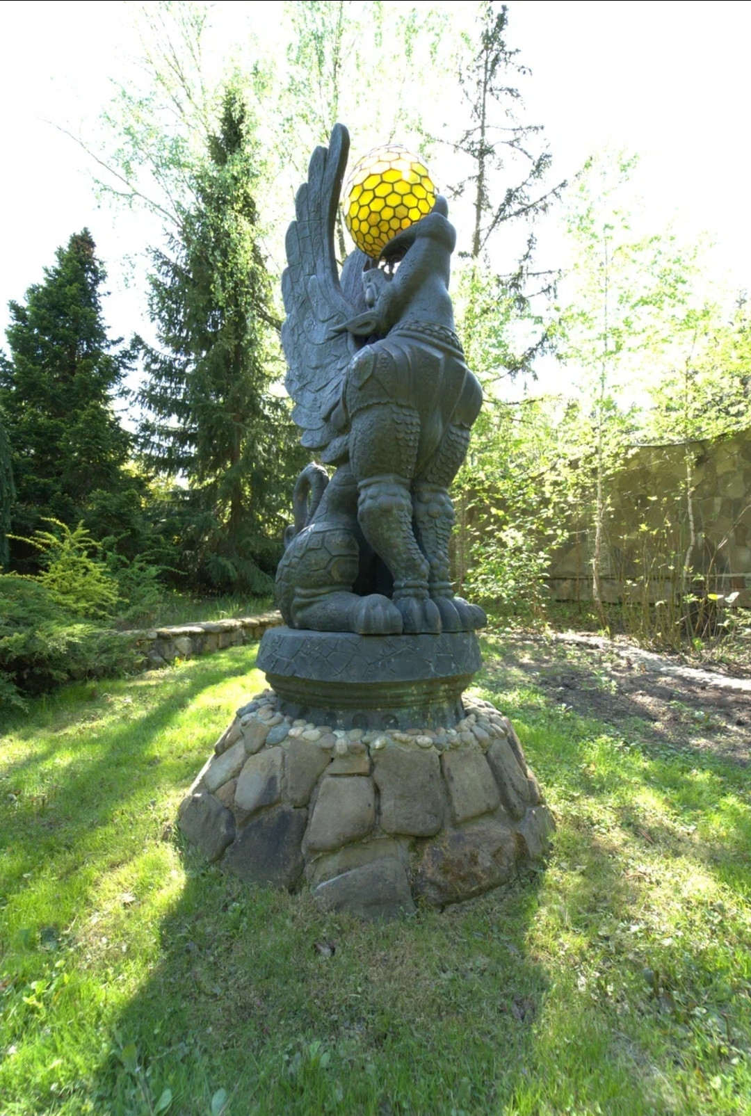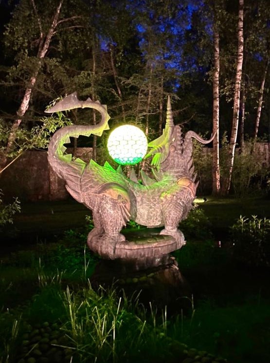 -31,5 сот. - ландшафтный дизайн, с системой автополива, 3 ручья, водопад "Полотенце", 8 бронзовых 2-х метровых бронзовых статуй с витражными светильниками, озеро полное карасей, берега забетонированы, армированы, декоративный камень по краю. Остров с беседкой (авторский дизайн, мозаика, свет), два ажурных мостика. Смешанным лес, прогулочные дорожки с подсветкой в ночное время (272 светильника). Небольшой оборудованный огородик.