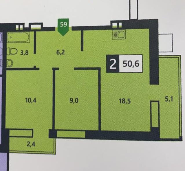 Общая площадь 51 м2
