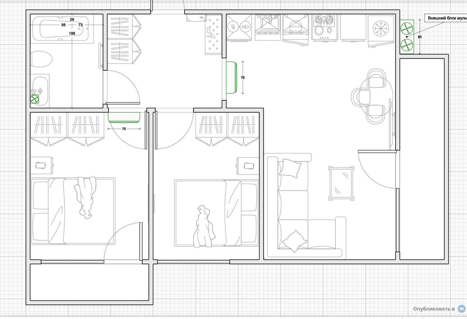 Грамотная планировка помогла спланировать 2 спальни и кухню- гостиную. Панорамное остекление. Шикарное расположение.