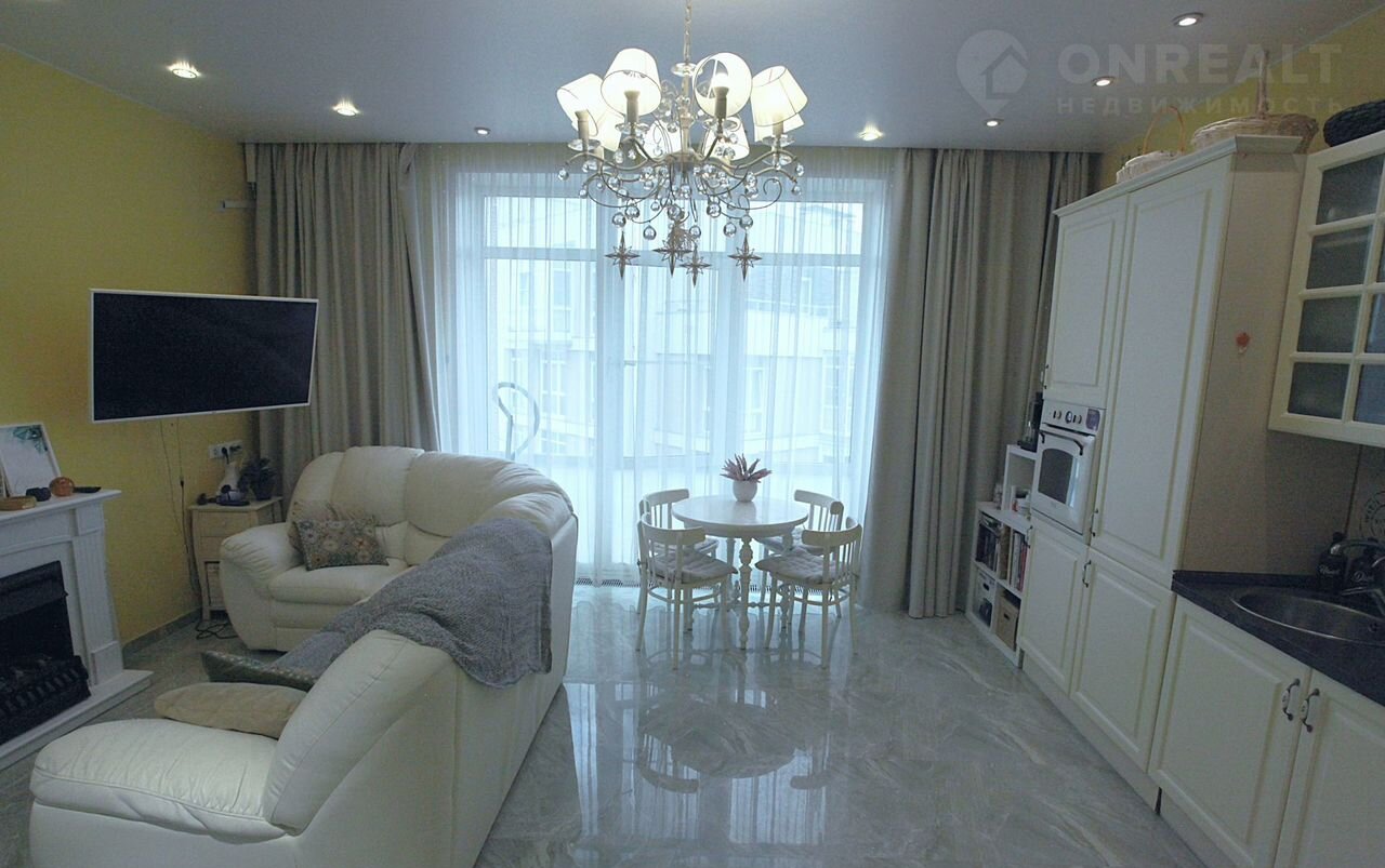 В квартире потолки высотой 3 м, очень добротный евро-ремонт. Полностью укомплектована качественной мебелью и современными бытовыми приборами. Полы с подогревом во всей квартире, мощный кондиционер Мitsubishi, камин с эффектом живого огня и функцией увлажнения воздуха, а также электрокарниз для штор.