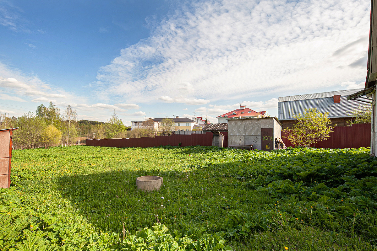 В пешей доступности от участка - городские магазины Лента, Пятерочка, аптека, строительный рынок, АЗС с кафе и круглосуточный магазин.
