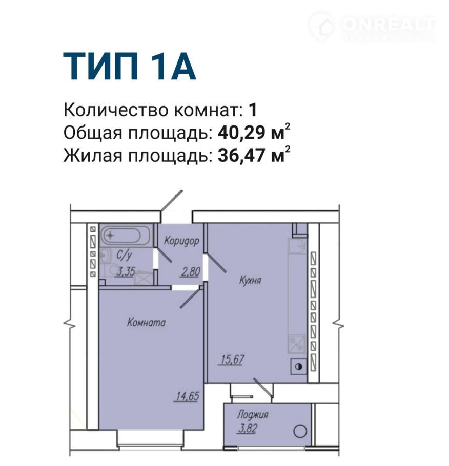 Общая площадь 40.3 м2