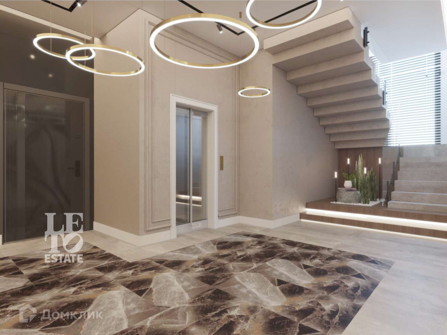 Первый этаж: холл, прихожая, две гардеробные, санузел, кухня-гостиная с выходом на террасу, кладовая, мастер-спальня с санузлом и гардеробной, зона для персонала с отдельным входом (кухня-гостиная, санузел);