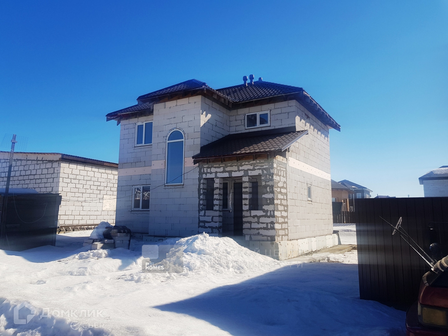 Дом построен в 2018 году, под чистовую отделку, очень теплый, на свайно-ростверковом фундаменте, 1,2 м глубиной. Стены-ГБ блоки. Цокольное и межэтажное перекрытия – монолитные. Кровля-метало- черепица. Цоколь утеплён, отмостка дома с утеплением. Дом построен проверенной строительной компанией, все документы имеются.