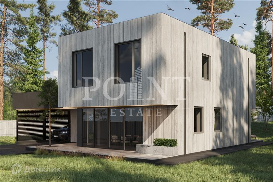 Лот: 97242.  Екатерина.  Современный двухэтажный дом Q House площадью 327 кв.м в стиле баухаус, разработанный строительной компанией Qtec совместно с архитектурным бюро Willen Associates Architecten (Германия), построен в закрытом благоустроенном коттеджном поселке "Зосимово" с благоприятной экологией, на территории Новой Москвы в окружении живописных лесов. Дом находится на стадии строительства и сдается в отделке White Box с оборудованной котельной Также возможна чистовая отделка; комплектация дома мебелью и бытовой техникой. - Фундамент: утепленная шведская плита -  уникальная энергоэффективная технология, позволяющая значительно сэкономить на отоплении дома, с встроенными коммуникациями и теплым водяным полом. - Конструкция дома: монолитные перекрытия, заполнение стен газобетонными блоками D400.- Оконные системы: алюминиевый профиль Алютех, двойные стеклопакеты. - Фасад: лиственница. Встроенные в фасад водоотводы. Архитектурная подсветка. - Кровля: монолитная плоская кровля с полимерной мембраной Logicroof по технологии компании Технониколь. Просторная терраса на крыше. - Коммуникации: теплые водяные полы, выполнена разводка электричества, проведен газ и организована газовая котельная с оборудованием Baxi. Предусмотрена система резервного отопления. Проведены трассы под кондиционеры.  Планировка тщательно разрабатывалась командой архитекторов, каждая деталь в доме продумана до мелочей:-3 спальни, включая мастер-спальню с собственной ванной комнатой и гардеробной-Гостиная с камином и выходом на террасу-Просторная гостиная-столовая-Терраса на крыше-Много мест для хранения-Двухконтурный котел в котельнойВсе коммуникации центральные, газовое отопление (собственная котельная). На участке 8 соток выполнен ландшафтный дизайн: высажены крупномерные деревья, кустарники, газон; организована зона отдыха вокруг кострища. Подъездная дорога и тропинки уложены брусчаткой фабрики Готика. Забор сделан в стиле фасада дома и обшит натуральным деревом. Установлены автоматические ворота и калитка. Удобная транспортная доступность до лучших школ и университетов. Школьный автобус местной школы заезжает прямо на территорию поселка. До центра даже в час пик можно доехать всего за час. Готовность: февраль 2023 года.