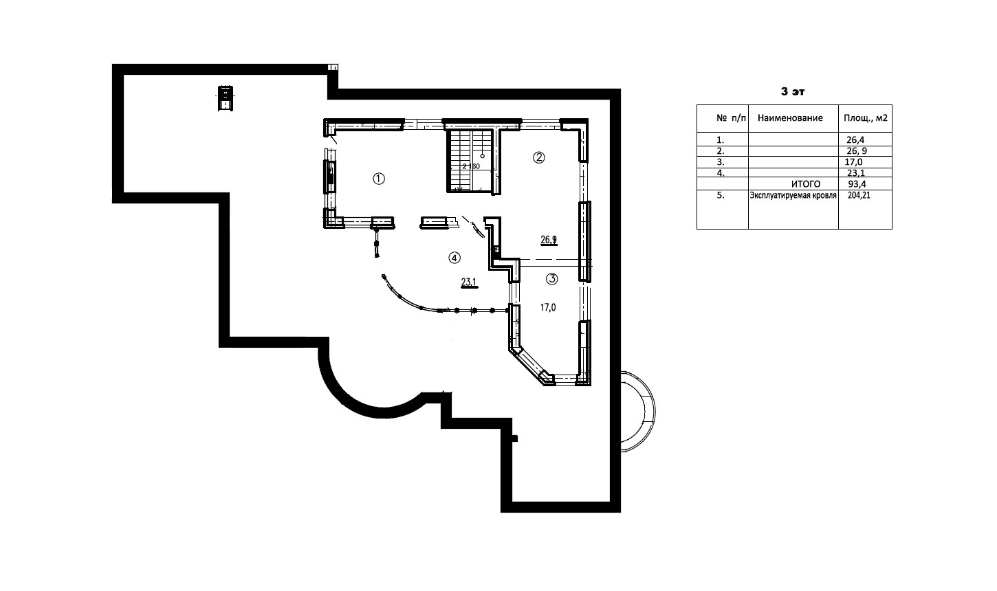 Терраса на 2ом этаже -72кв .м на 3 этаже -204 кв.м .