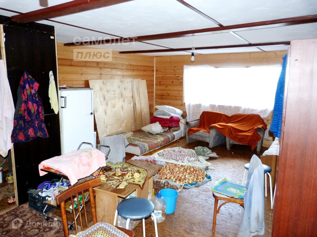 - Гараж с подъёмными воротами 7х4 из кирпича. Над гаражом расположен дом из бруса, утеплённый для круглогодичного проживания. Выведена канализация, отделена комната для санузла. Полы и потолок утеплены, двойные окна.