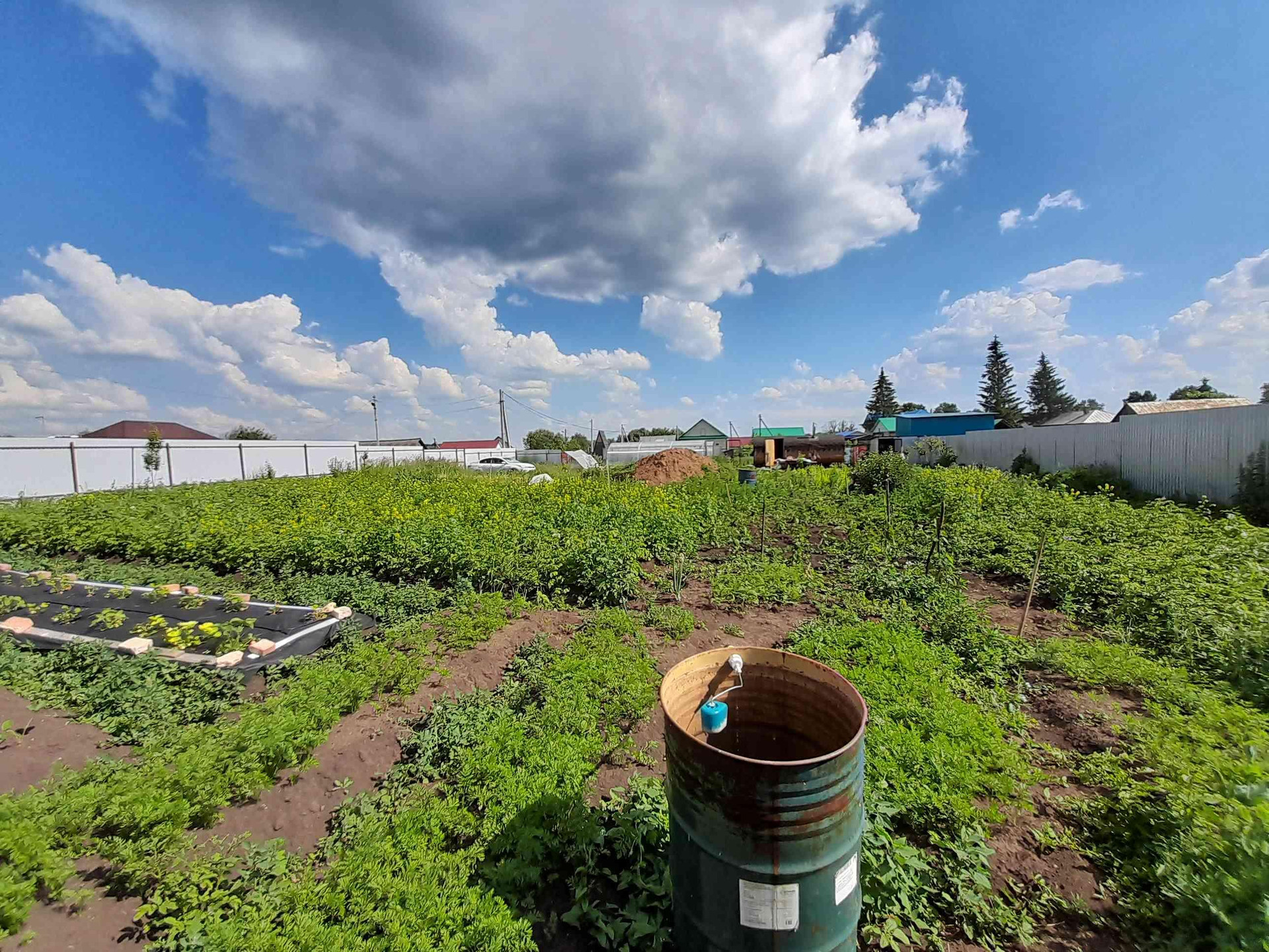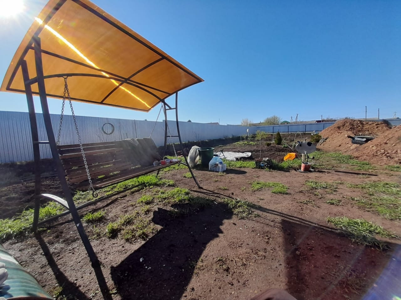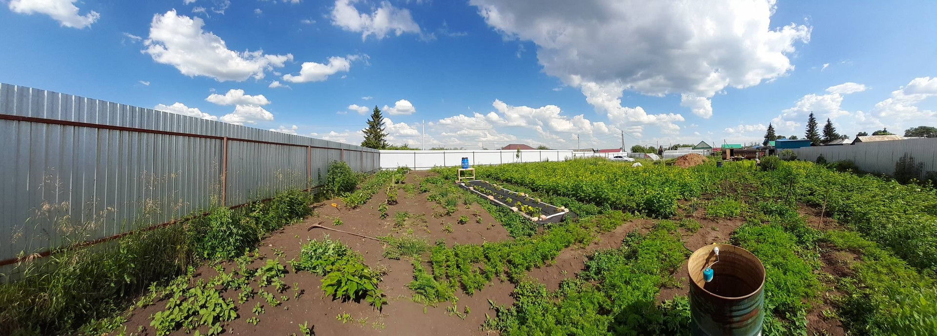 продаётся земельный участок ровный ширина по улице 40м .дорога газ водопроаод по улице электричество 380В проведено.огорожен 2метровым забором из профнастила. маршрутка каждые 15мин. на участке большая новая  баня бочка овал 6*2.5 м три секции 2 теплицы новые металлический хозблок новый туалет из металлочерепицы. капитальные качели  мангал. земля чернозем обработанная много насаждений . рядом Акманай с рекой. Дема пляж рыбалка лес ягоды грибы яблоки облепиха