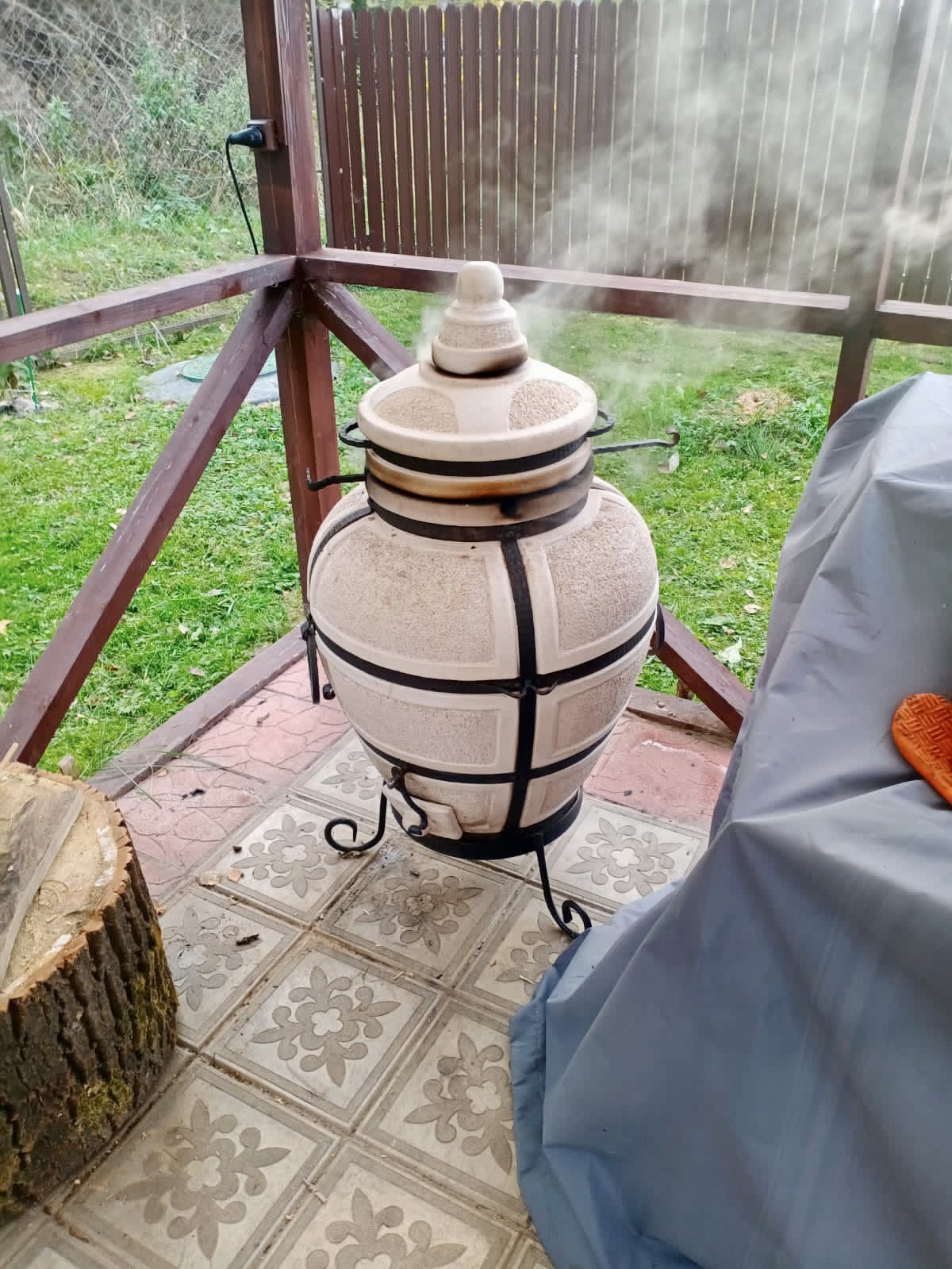 Веранда 18 кв. м., остеклена, отапливается от дровяной чугунной печи.