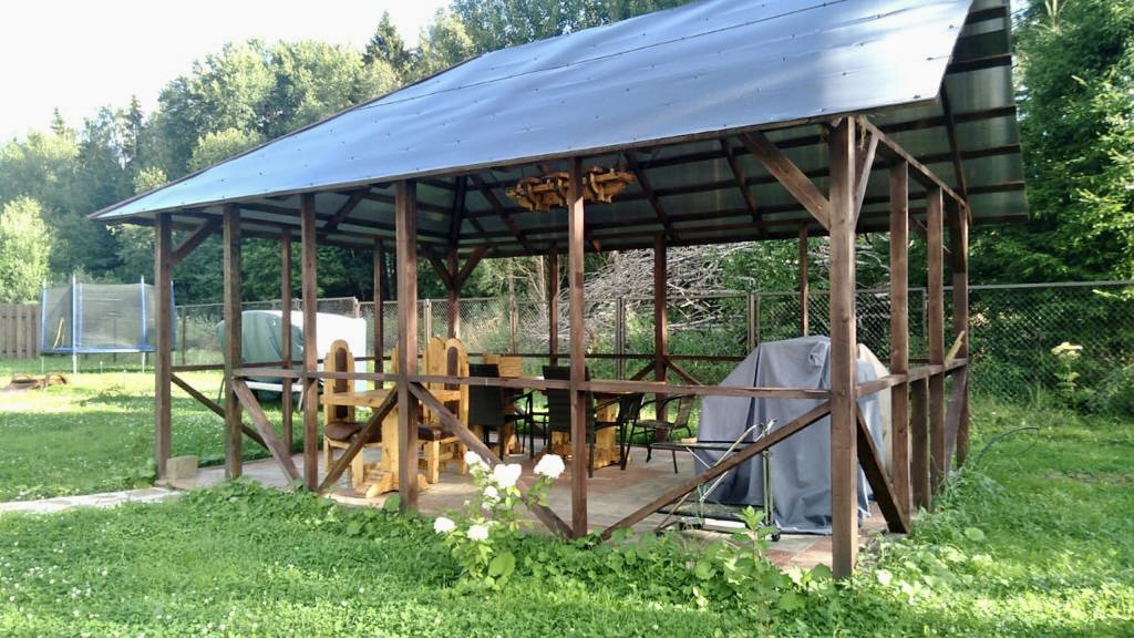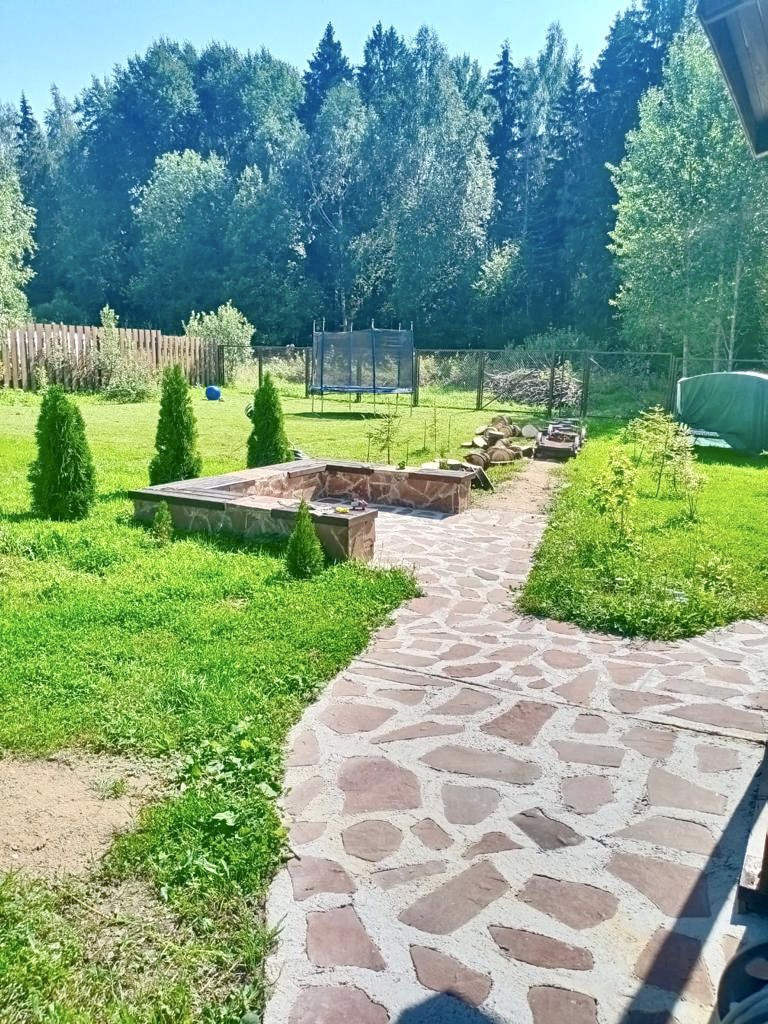 Участок правильной прямоугольной формы огорожен, имеется свой выход в лес. Имеется бетонный заезд и парковка на два автомобиля. Участок ухожен и благоустроен: установлена беседка 18 кв. м. с деревянной мебелью, мангал, тандыр, утепленный хозблок, деревянный дровник, новый каркасный бассейн 4,5*4,5 м.
