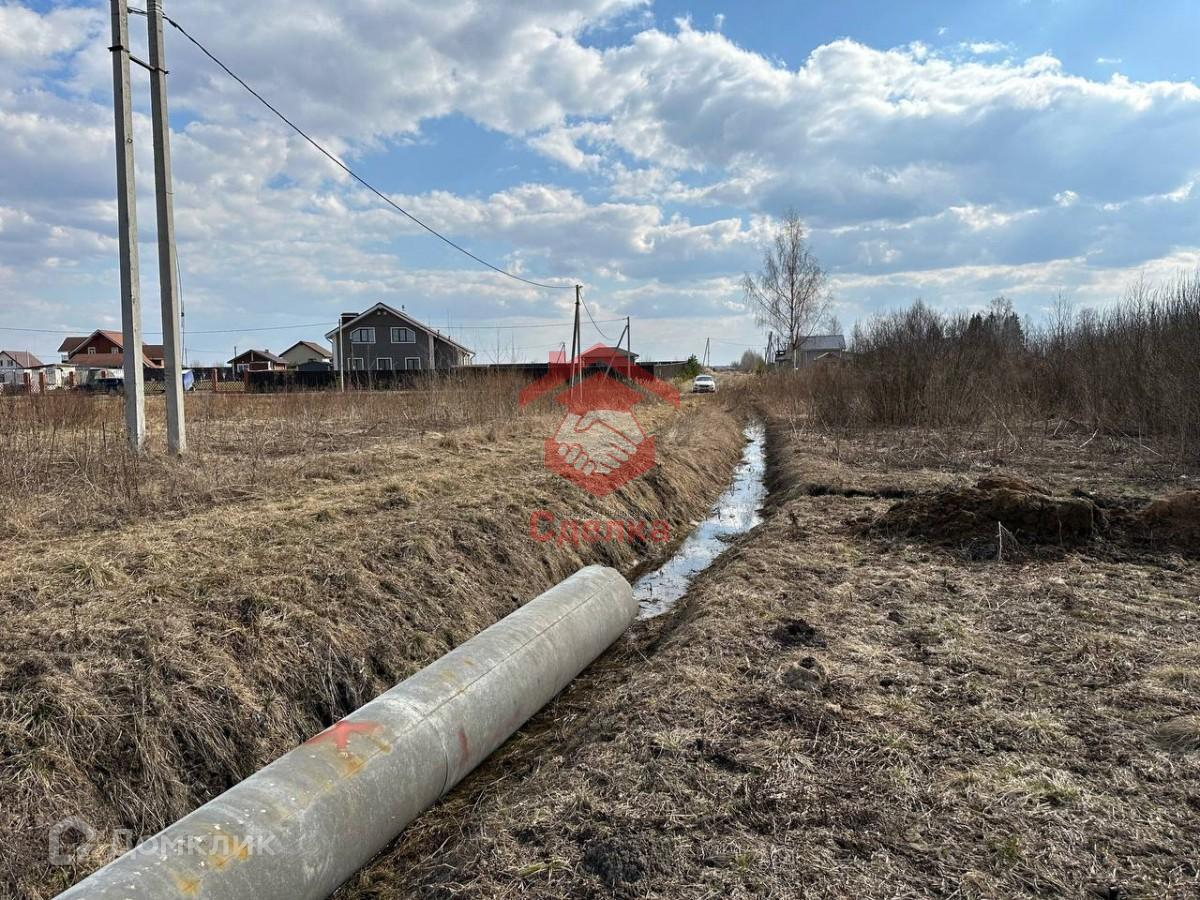 Участок полностью подготовлен к строительству дома: ровный, сухой, оканавлен, положена труба для проезда на участок, очищен от деревьев.